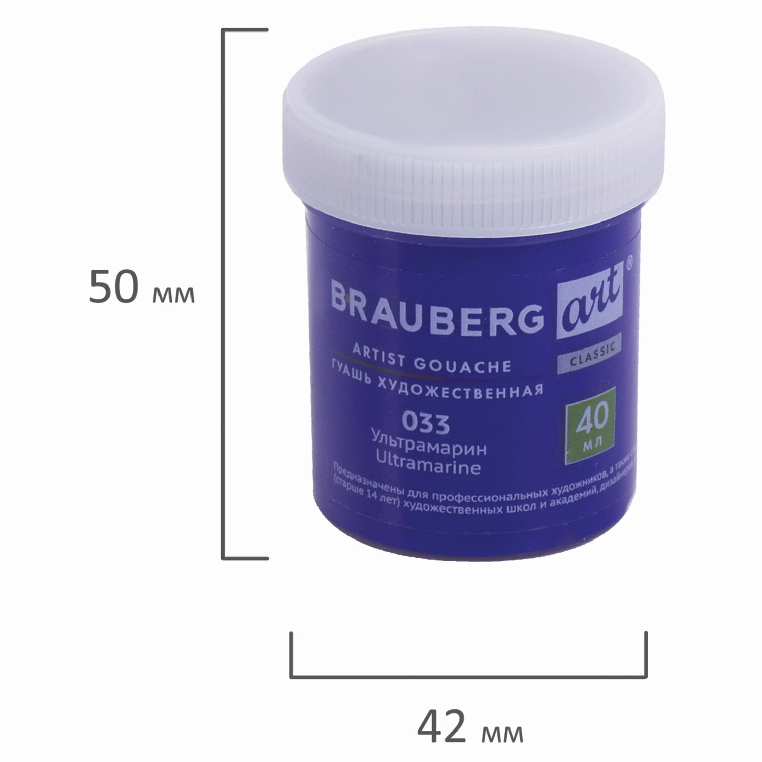 - Гуашь художественная 1 шт., BRAUBERG ART CLASSIC, баночка 40 мл, УЛЬТРАМАРИН, 191570