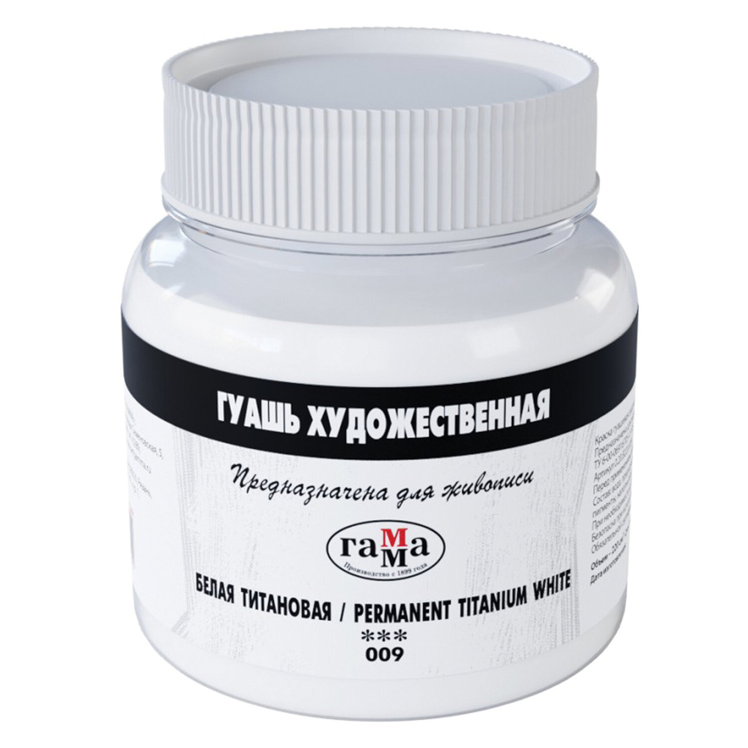 - Гуашь художественная 1 шт., ГАММА, 220 мл, белила титановые, 0.20.В220.009