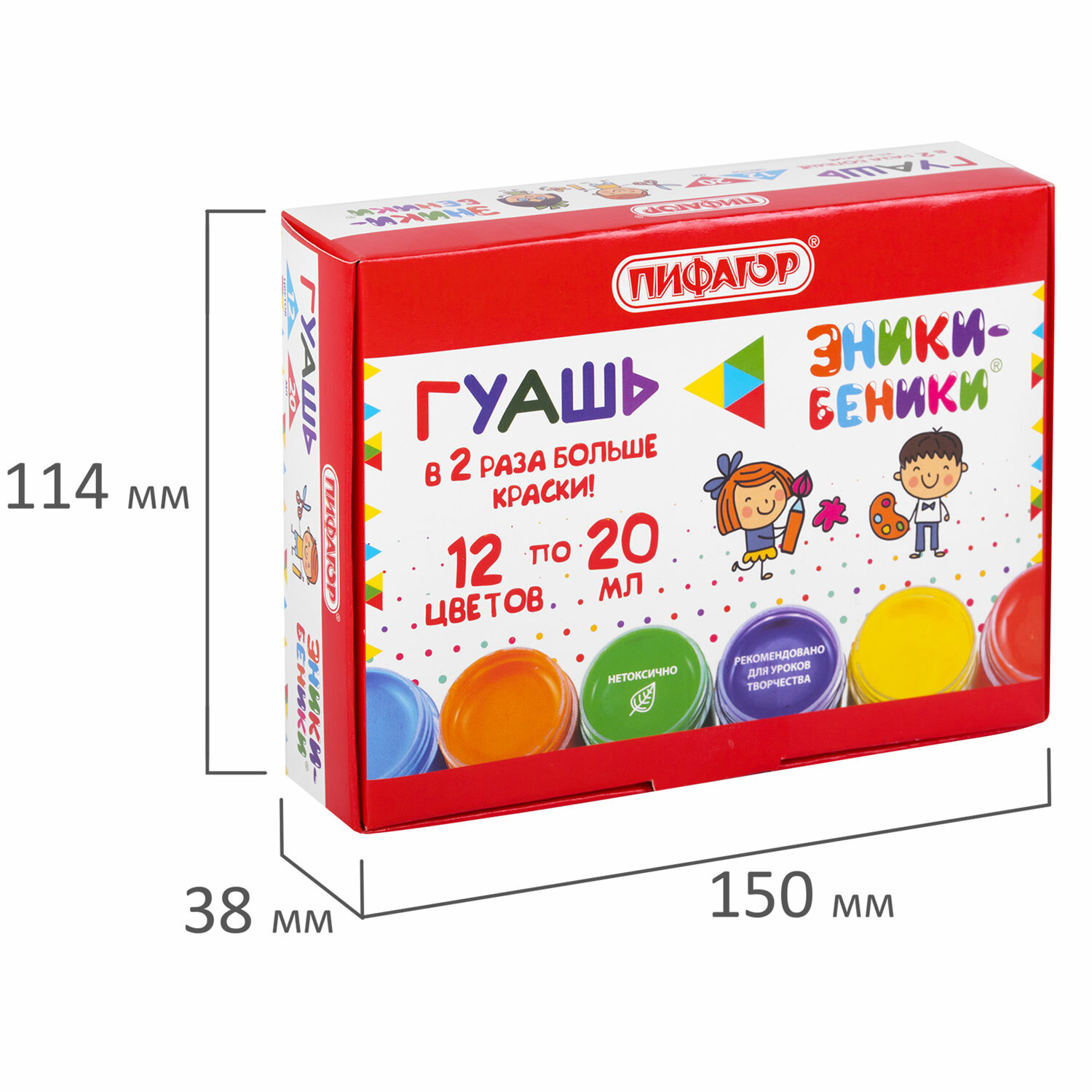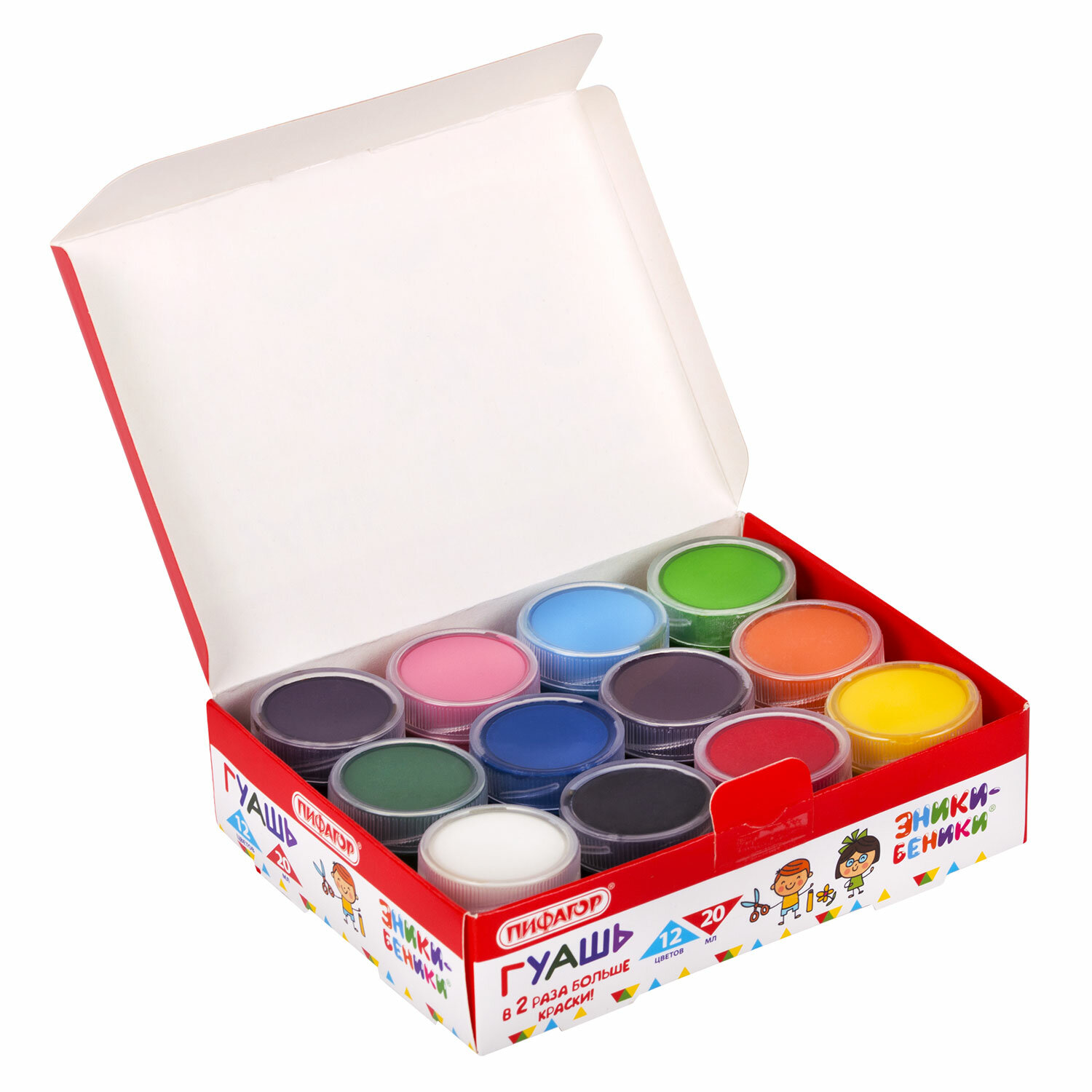 - Гуашь ПИФАГОР "ЭНИКИ-БЕНИКИ NEW", 12 цветов, по 20 мл, 192526