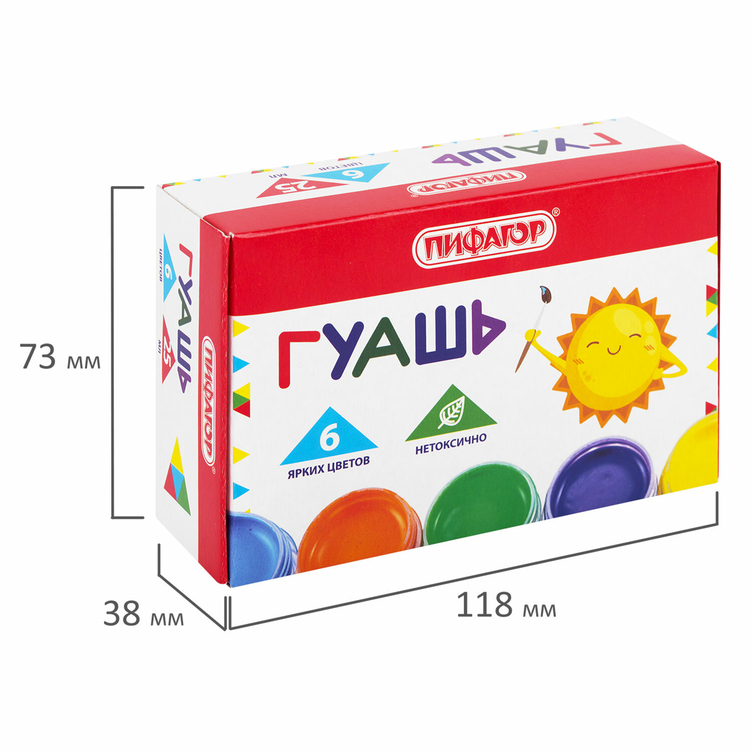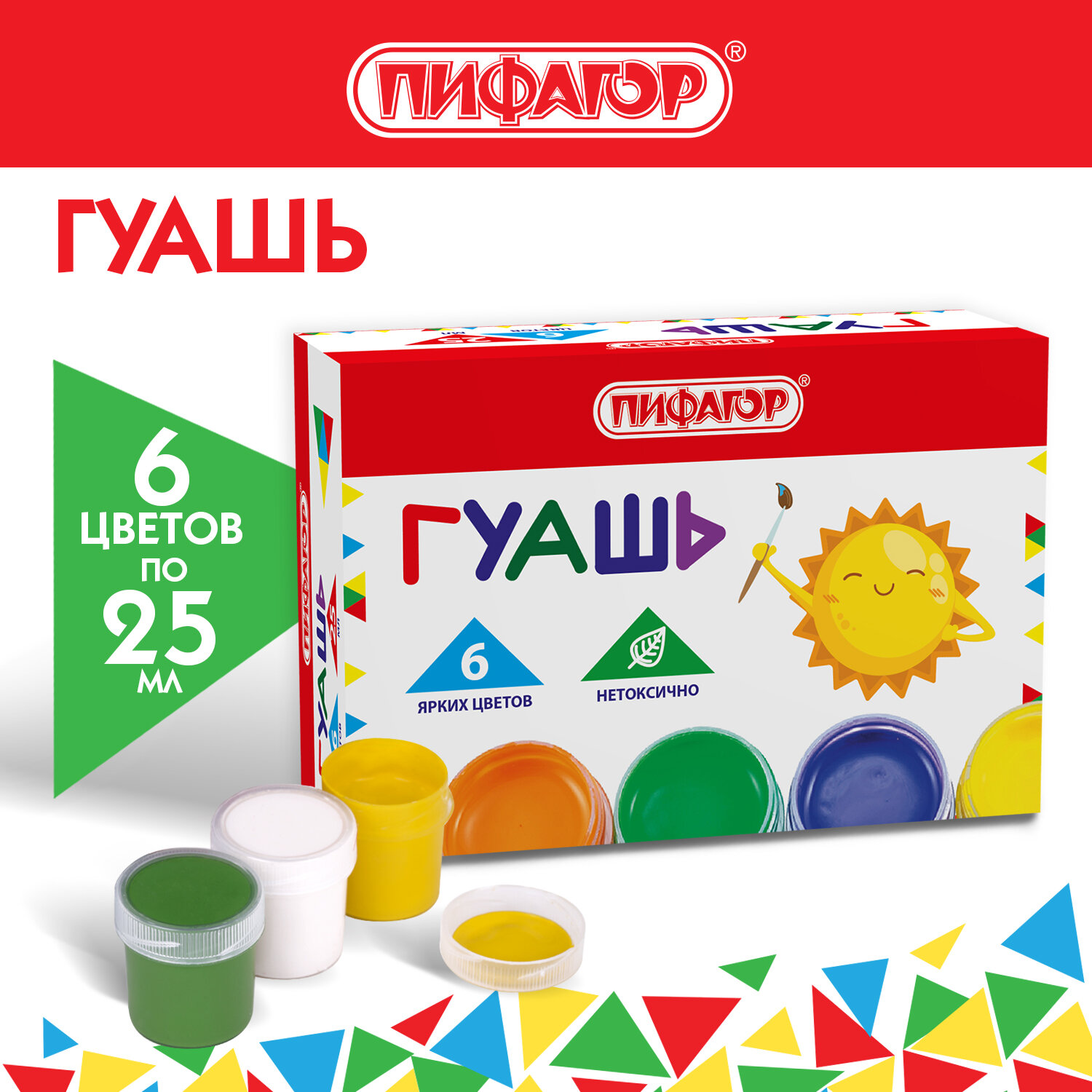 Гуашь ПИФАГОР "СОЛНЫШКО", 6 цветов по 25 мл, 192645