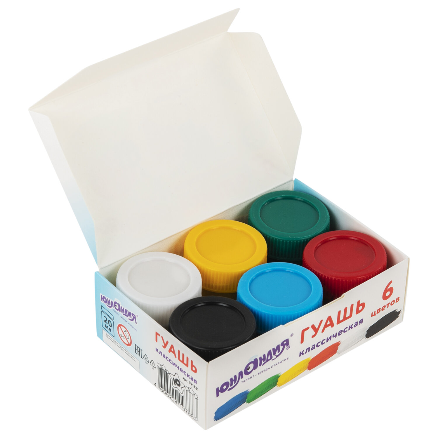 Гуашь ЮНЛАНДИЯ "ЮНЫЙ ВОЛШЕБНИК", 6 цветов по 20 мл, высшее качество, 191331