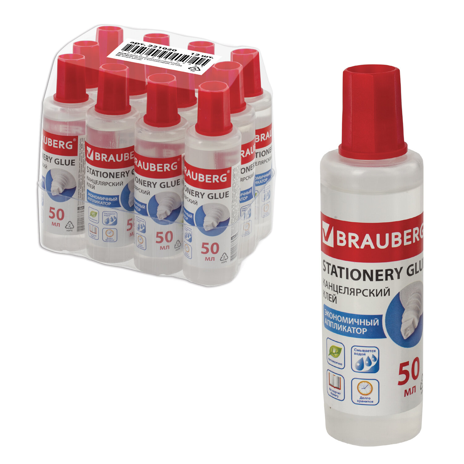 Имеет объем 50 мл. Пластиковый дозатор обеспечивает точное и равномерное нанесение. Обладает устойчивостью к морозу и отсутствием запаха. Не токсичен. Прозрачный клей наносится тонким слоем, обеспечивая быстрое схватывание поверхностей, а также экономичное расходование. Съемный колпачок предохраняет клей от засыхания. Быстро, удобно, выгодно! Клей канцелярский жидкий BRAUBERG, 50 мл, с аппликатором, 221020