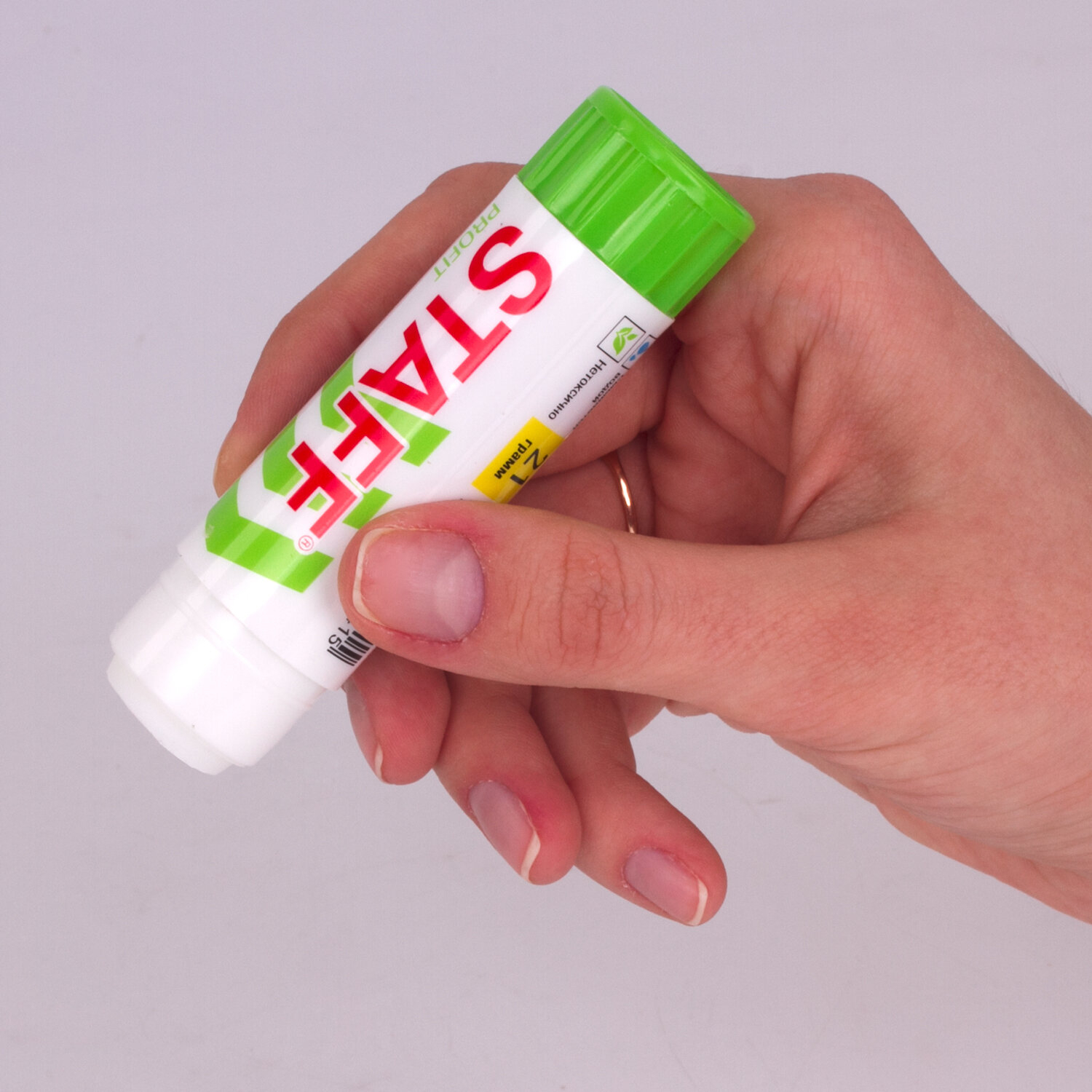 PVP-основа. После нанесения высыхает без образования пятен. Не токсичен, не вызывает аллергии и безопасен для здоровья. Легко наносится и распределяется по поверхности, оставляя тонкий и ровный клеевой слой, что позволяет расходовать его экономично. Клей удобен в использовании. Он не пачкает руки, стол, одежду, не попадает на участки бумаги, расположенные возле места склеивания. Обеспечивает быстрое и надежное склеивание. Оптимальный объем — 21 г. Увеличенный срок годности — 5 лет. Клей-карандаш УСИЛЕННЫЙ STAFF Profit, 21 г, PVP-основа, 228662