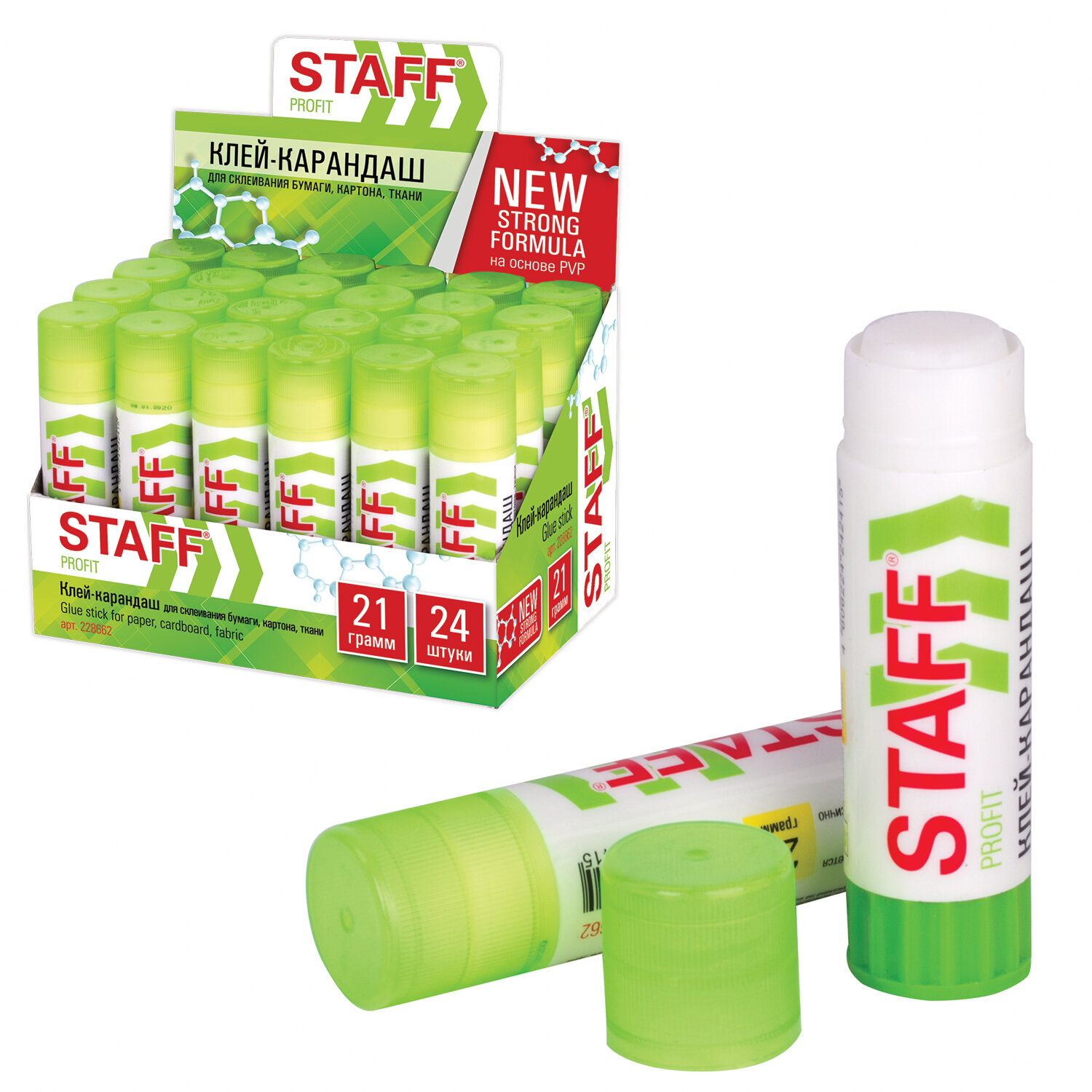 Клей-карандаш УСИЛЕННЫЙ STAFF Profit, 21 г, PVP-основа, 228662
