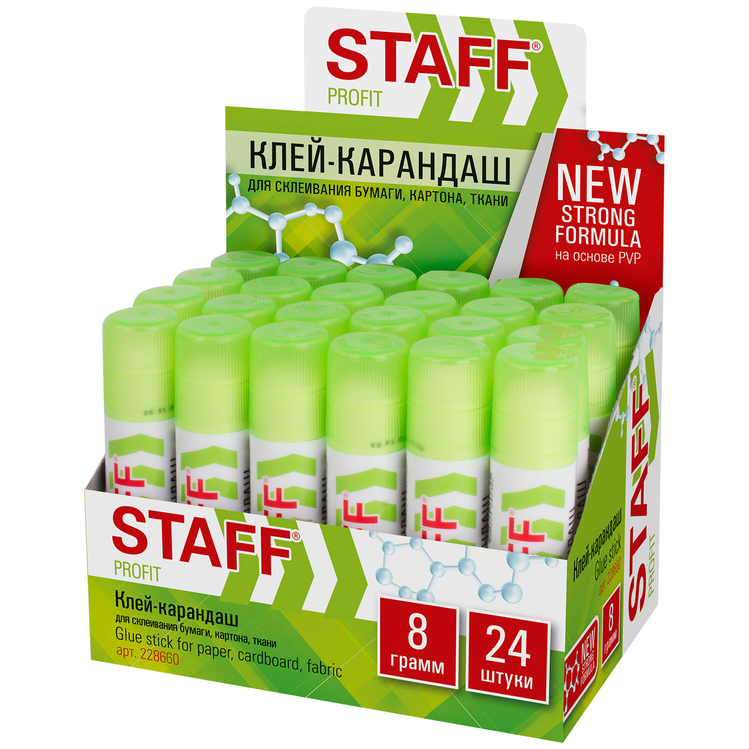 - Клей-карандаш УСИЛЕННЫЙ STAFF Profit, 8 г, PVP-основа, 228660