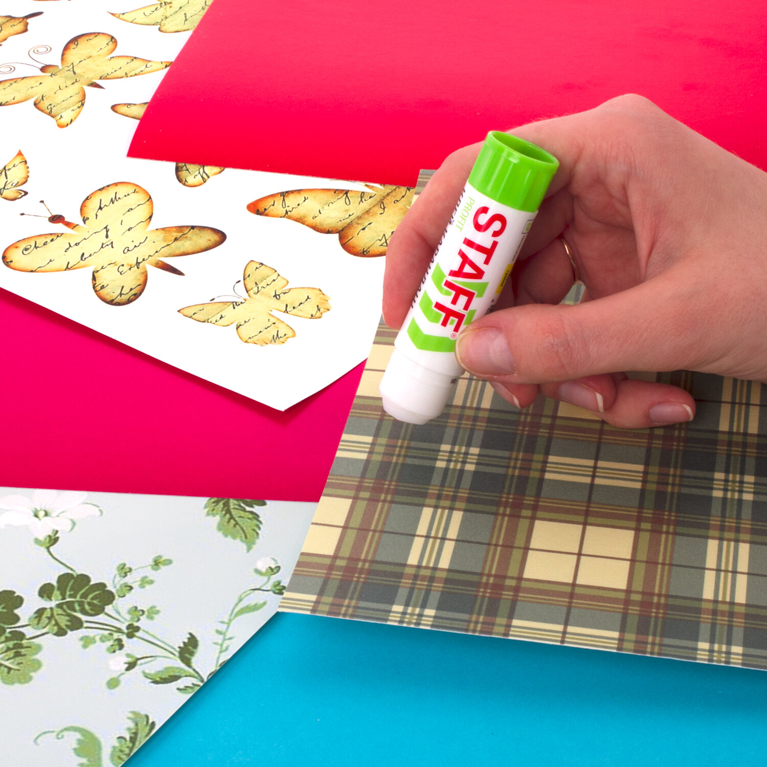 PVP-основа. После нанесения высыхает без образования пятен. Не токсичен, не вызывает аллергии и безопасен для здоровья. Легко наносится и распределяется по поверхности, оставляя тонкий и ровный клеевой слой, что позволяет расходовать его экономично. Клей удобен в использовании. Он не пачкает руки, стол, одежду, не попадает на участки бумаги, расположенные возле места склеивания. Обеспечивает быстрое и надежное склеивание. Оптимальный объем — 8 г. Увеличенный срок годности — 5 лет. Клей-карандаш УСИЛЕННЫЙ STAFF Profit, 8 г, PVP-основа, 228660