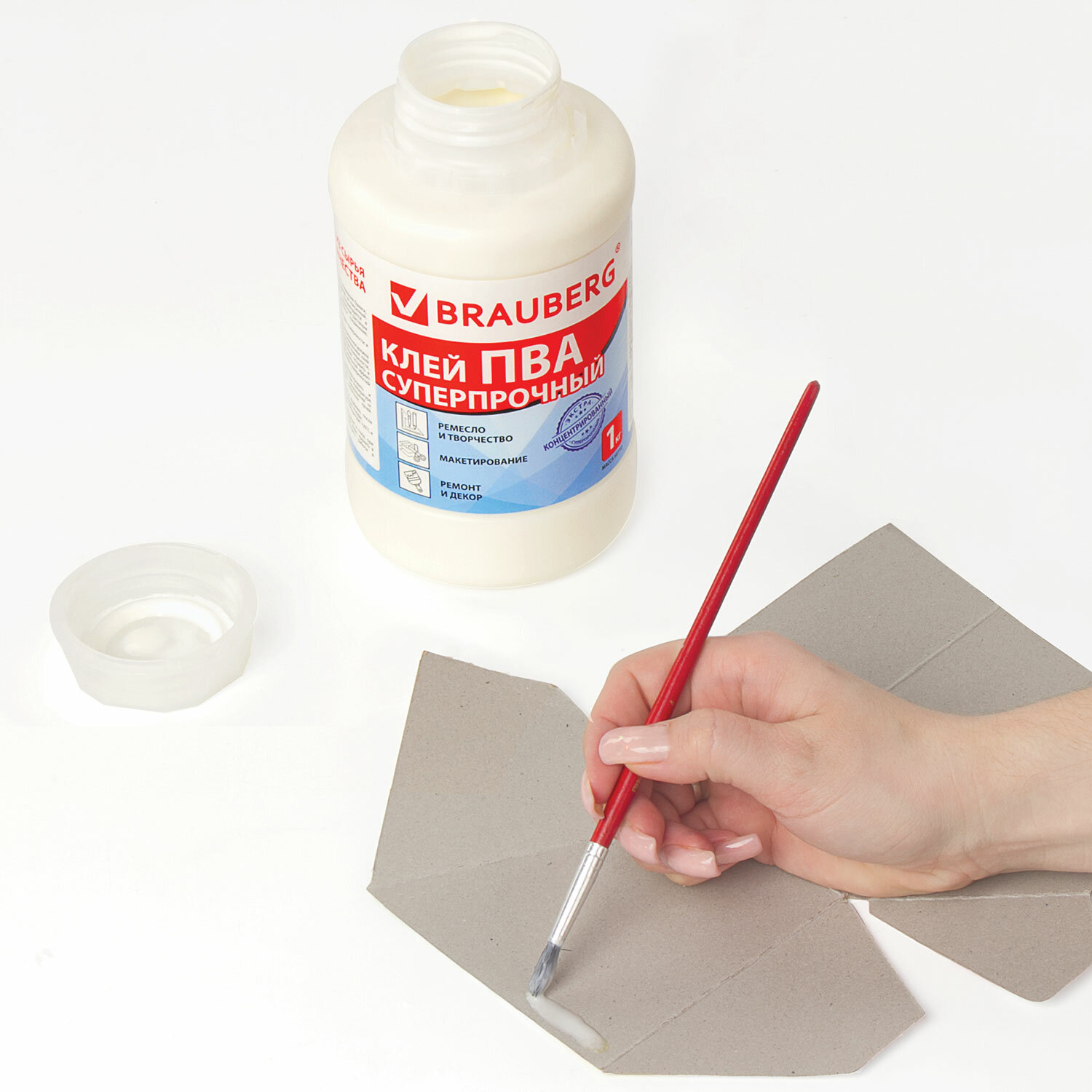 - Клей ПВА BRAUBERG, 1 кг, суперпрочный (керамика, ткань, кожа, дерево, бумага, картон), 600984