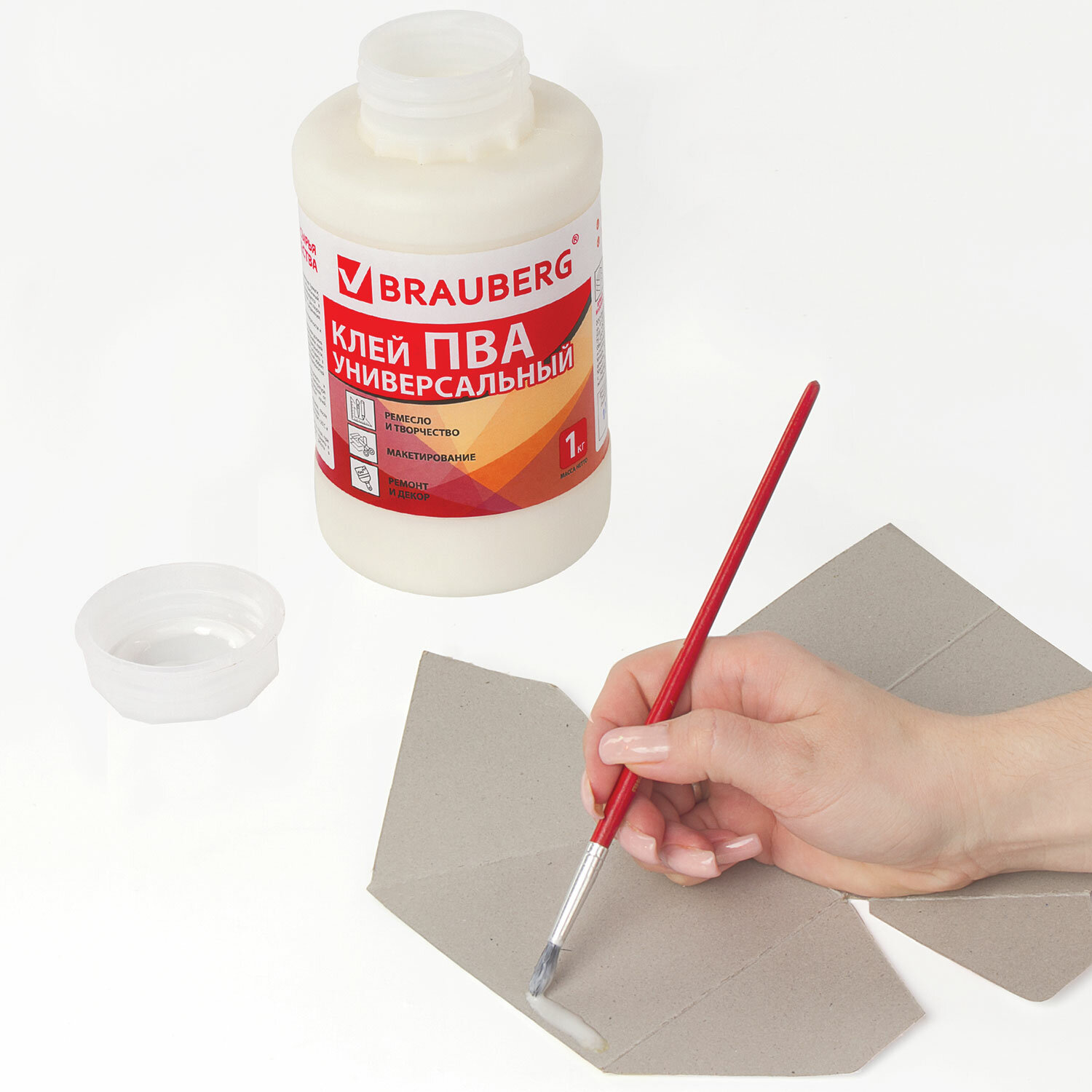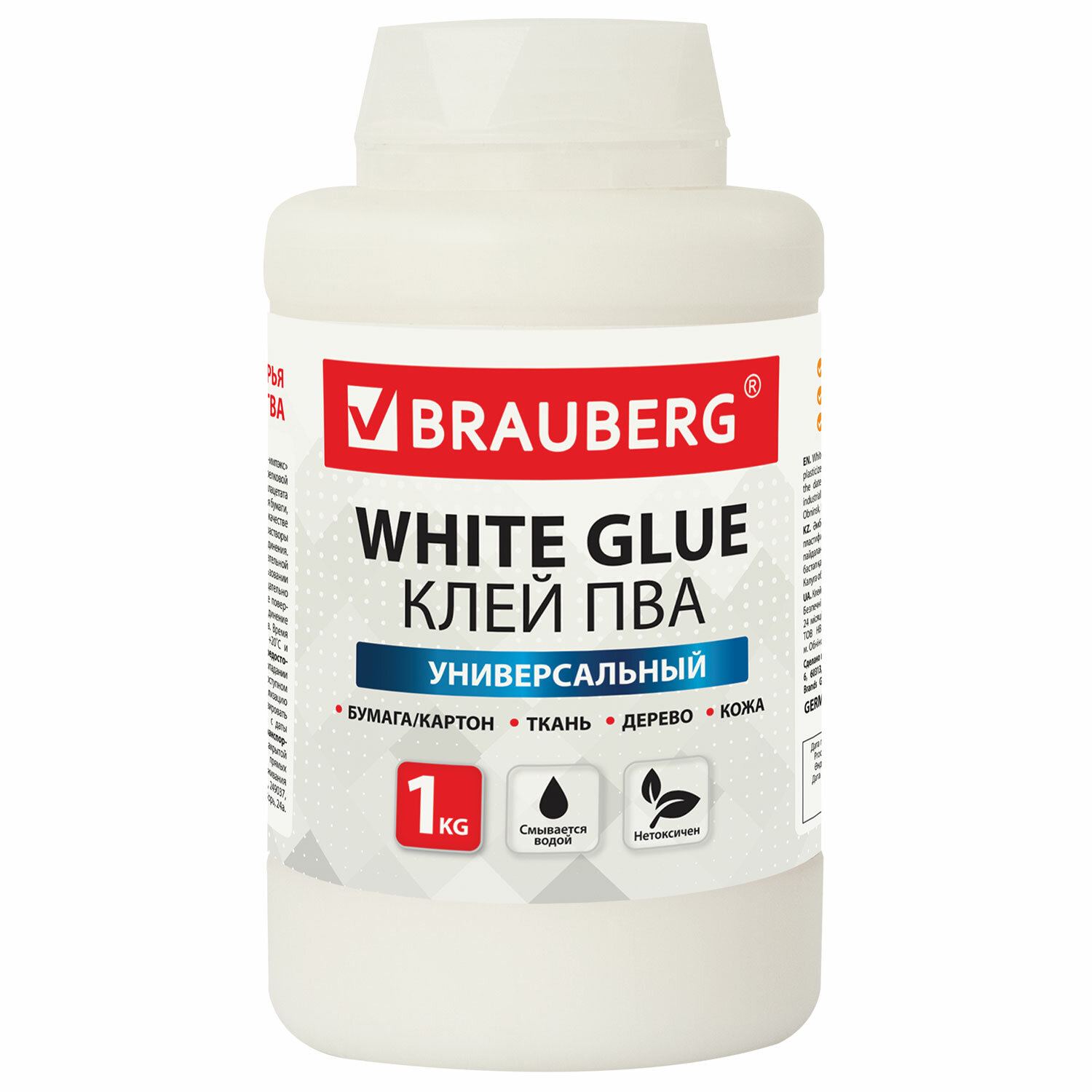- Клей ПВА BRAUBERG, 1 кг, универсальный (бумага, картон, дерево), 600983