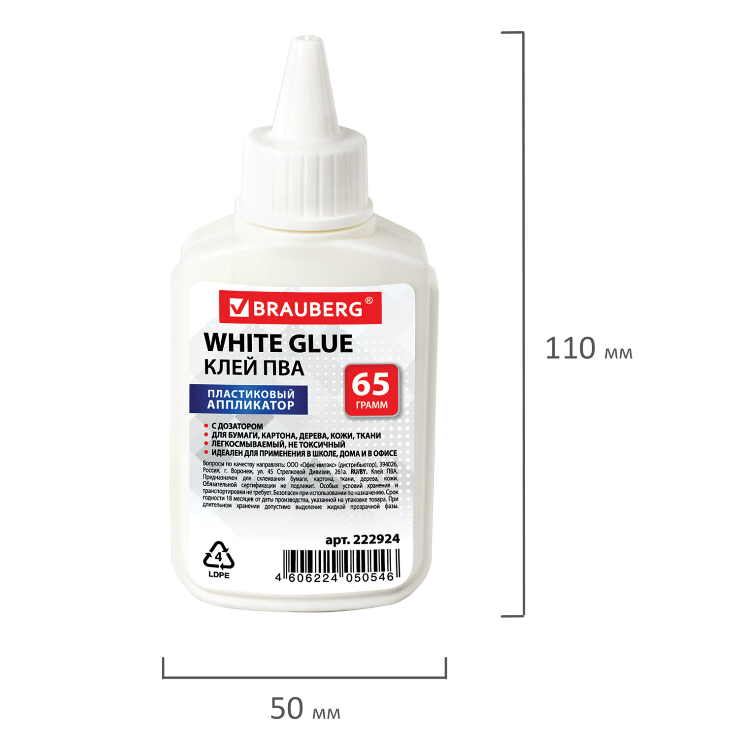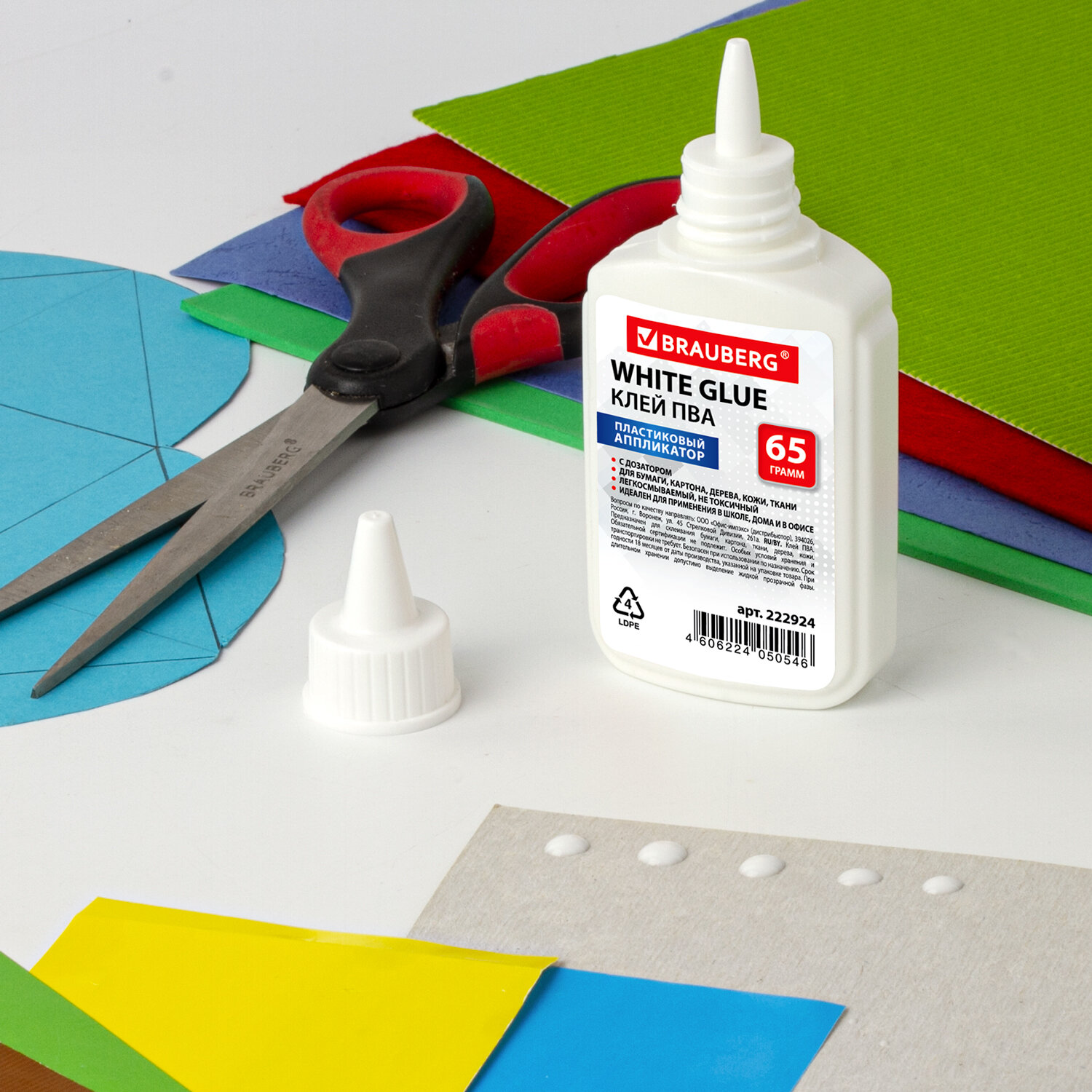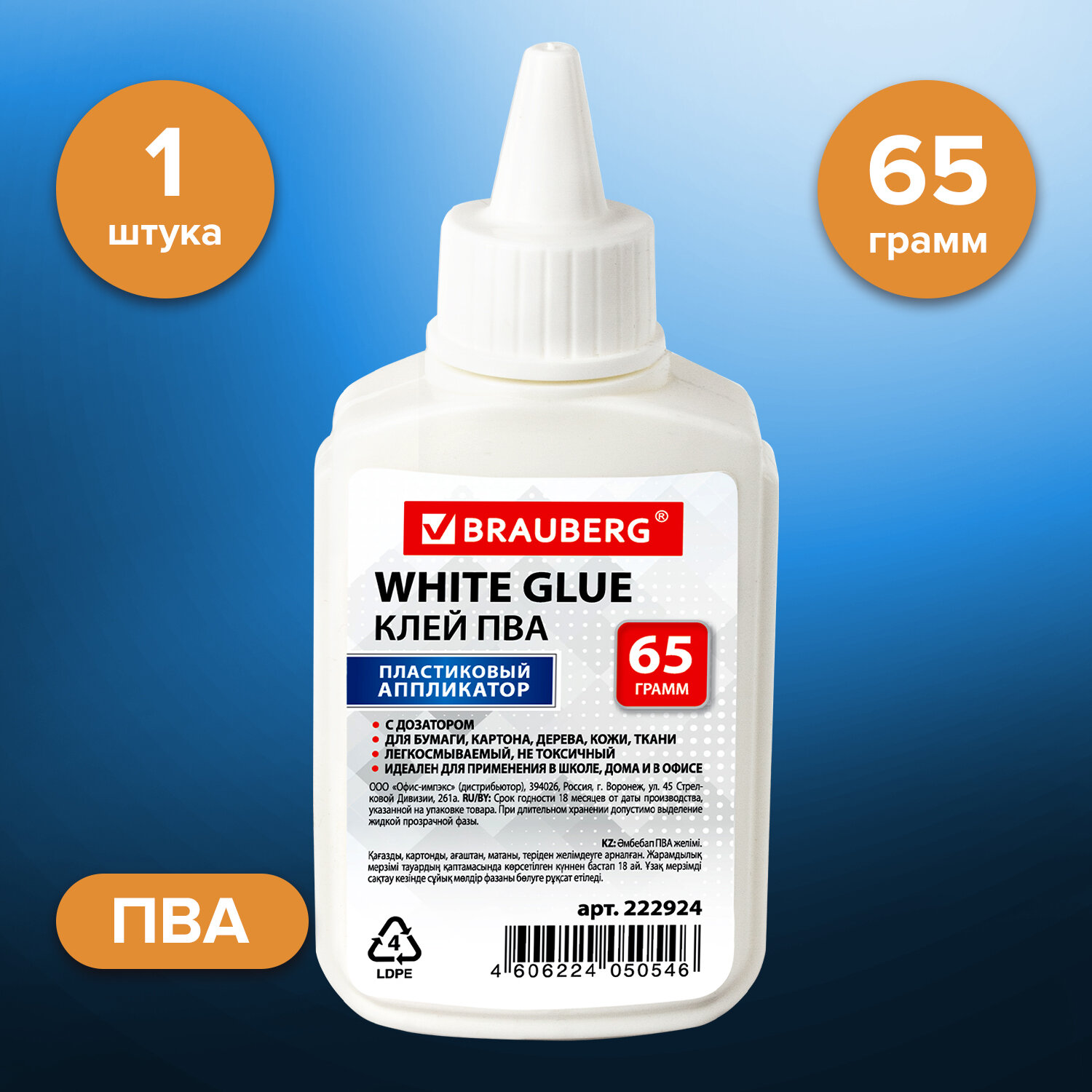 - Клей ПВА BRAUBERG (бумага, картон, дерево), 65 г, 222924