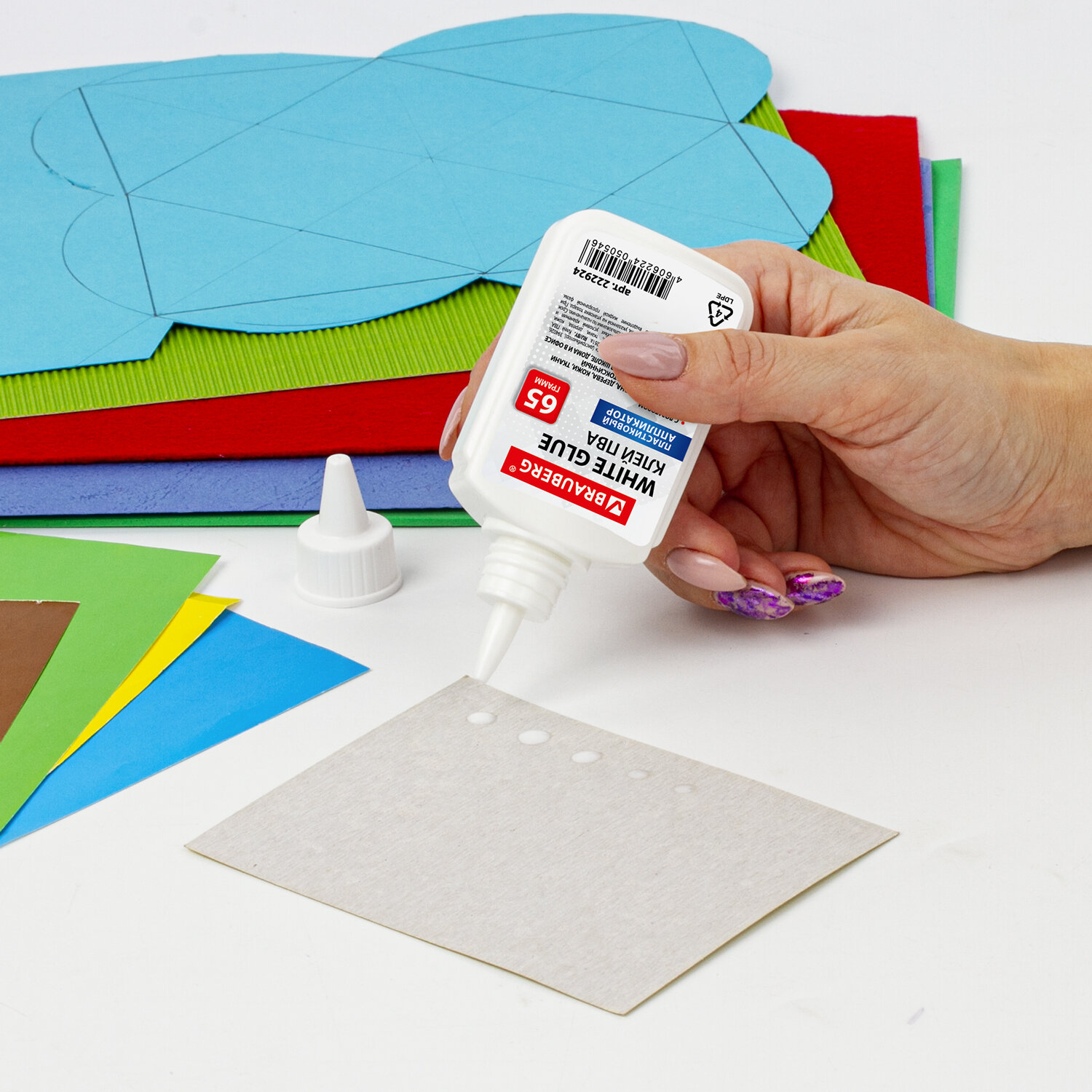 Имеет объем 65 мл. Пластиковый дозатор обеспечивает точное и равномерное нанесение. Обладает устойчивостью к морозу, не токсичен. Наносится тонким слоем, обеспечивая быстрое схватывание поверхностей, а также экономичное расходование. Съемный колпачок предохраняет клей от засыхания. Необходимо взболтать перед применением. Клей ПВА BRAUBERG (бумага, картон, дерево), 65 г, 222924