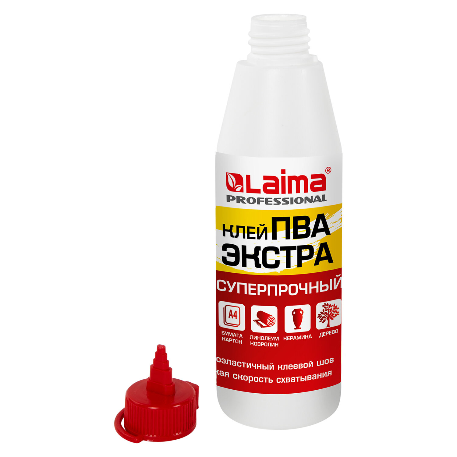 Клей ПВА Экстра Суперпрочный 0,5 кг (керамика, ткань, кожа, дерево, бумага, картон), LAIMA, 606430