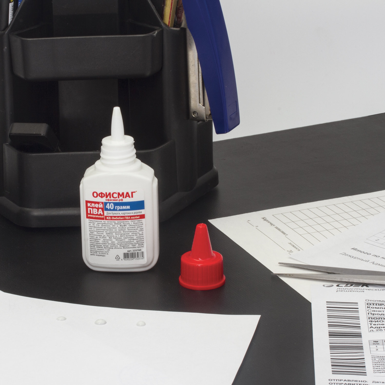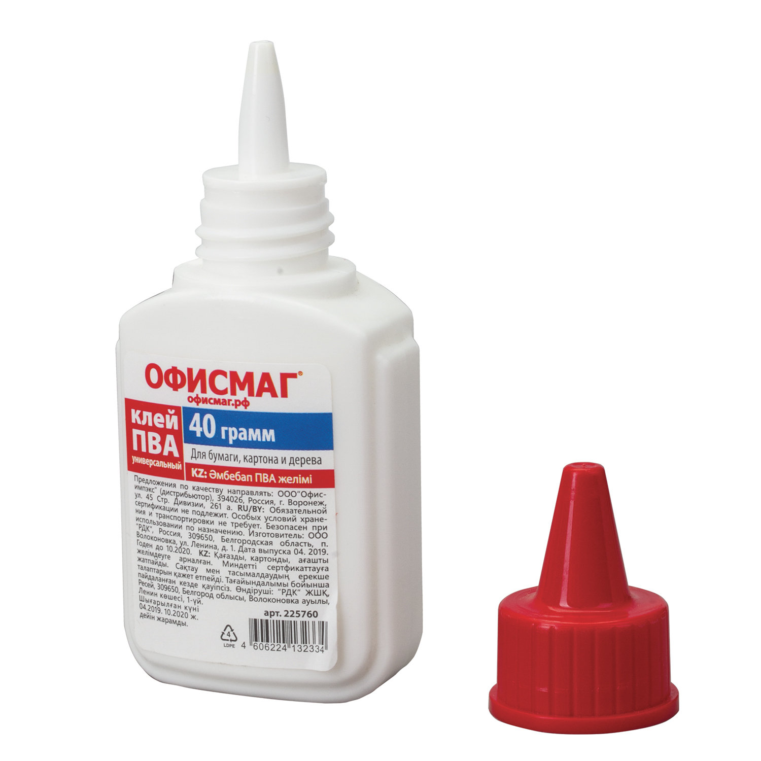 - Клей ПВА ОФИСМАГ (бумага, картон, дерево), 40 г, РОССИЯ, 225760