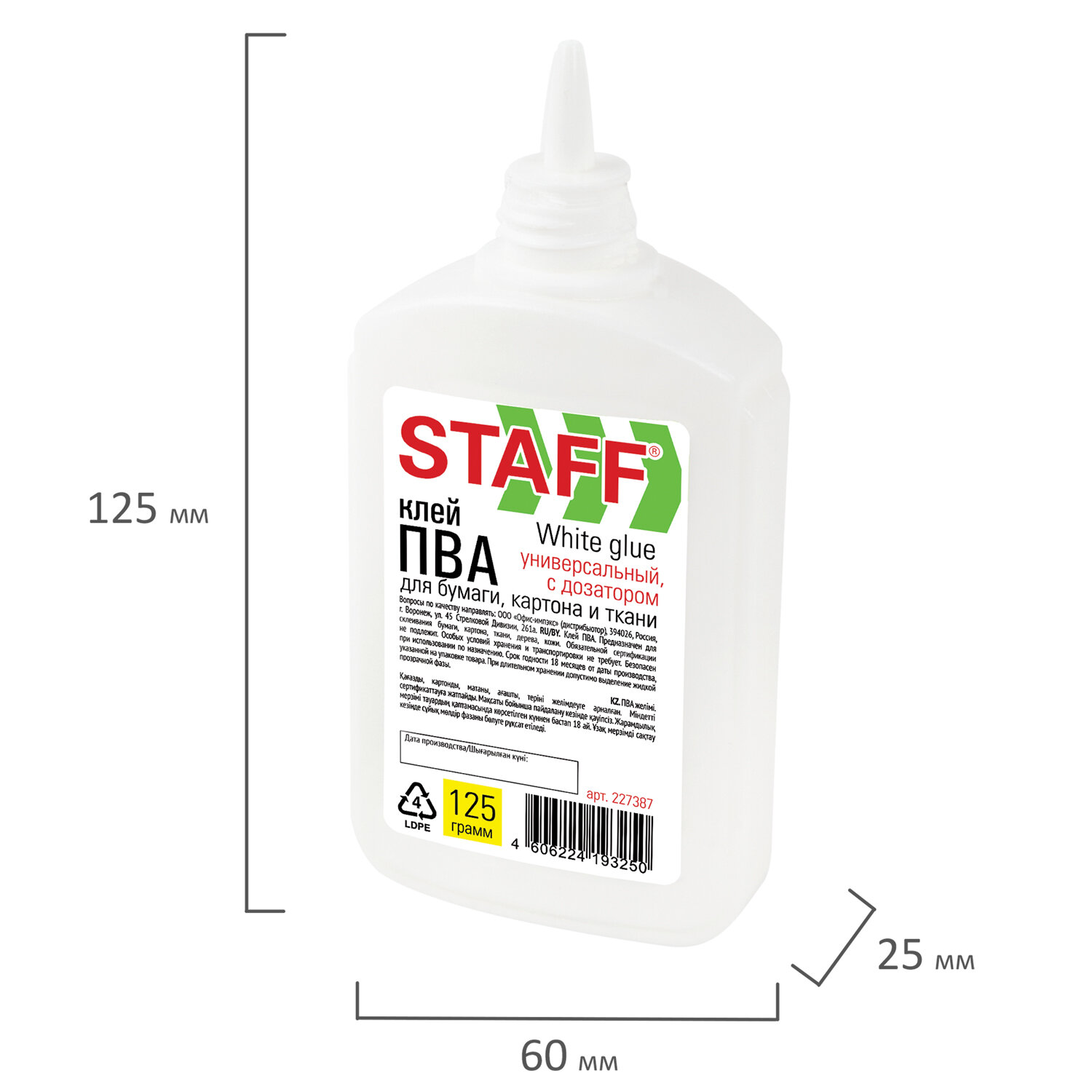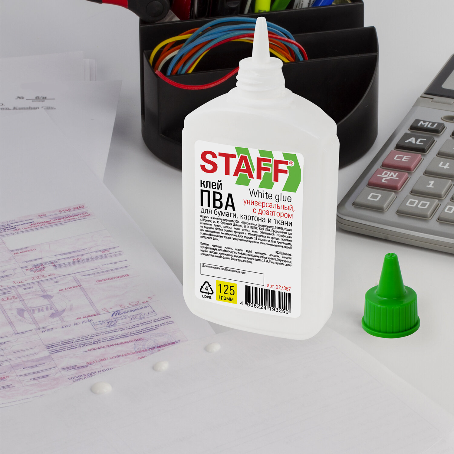 - Клей ПВА STAFF EVERYDAY, 125 г, с дозатором, 227387