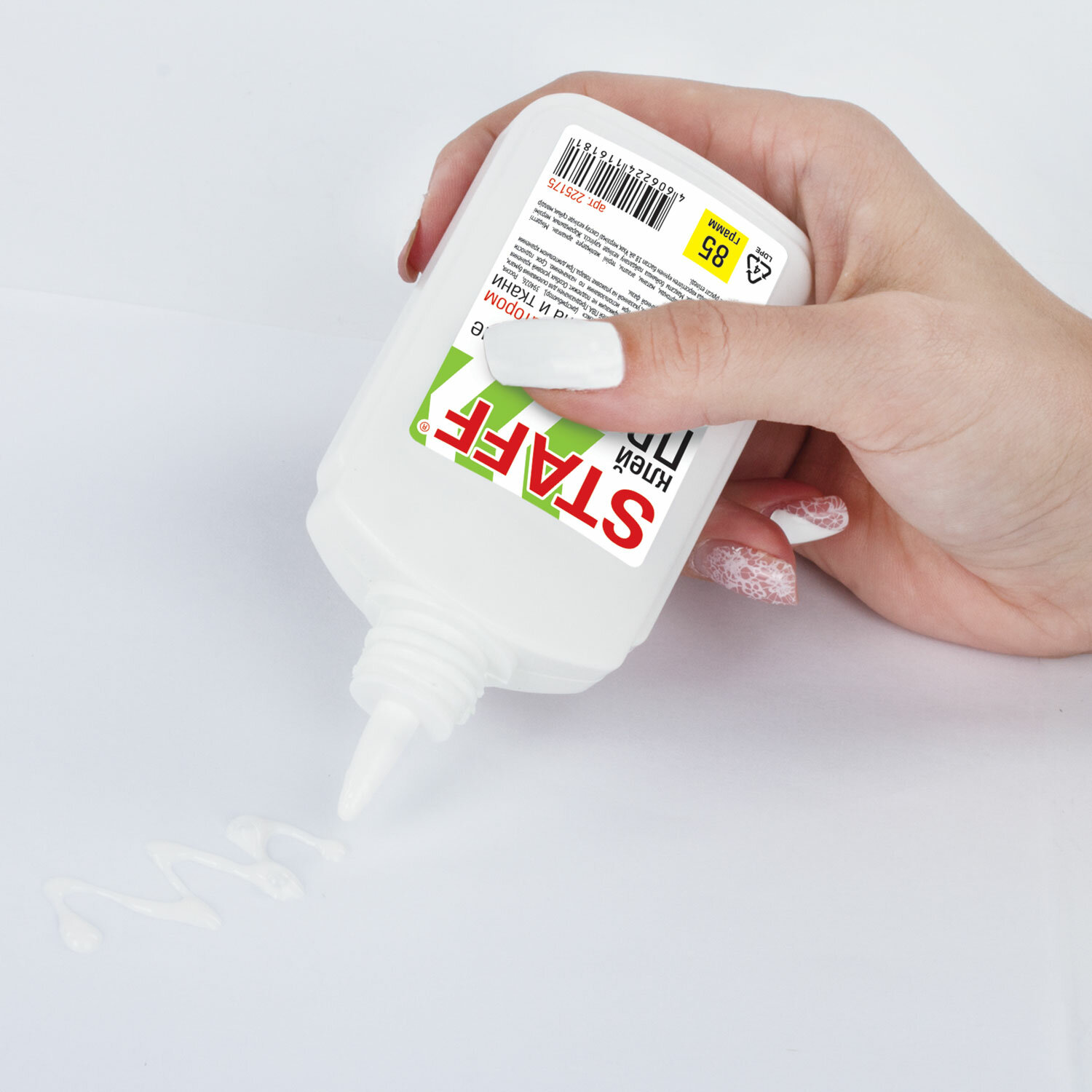 Имеет объем 85 мл. Флакон оснащен пластиковым дозатором, который позволяет равномерно и точно наносить клей на поверхность. Нетоксичен, морозоустойчивый. Быстрое склеивание достигается за счет нанесения тонкого слоя клея. Экономичное расходование. Съемный колпачок предохраняет клей от засыхания. Необходимо взболтать перед применением. Клей ПВА STAFF EVERYDAY, 85 г, с дозатором, 225175