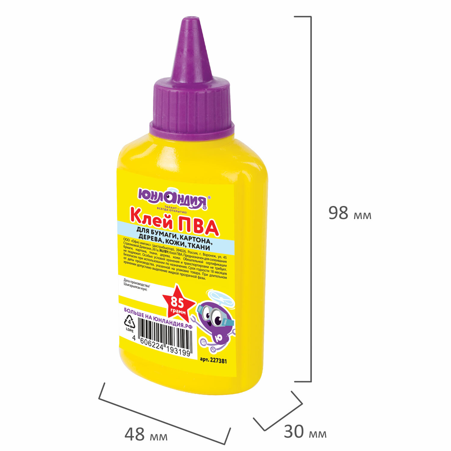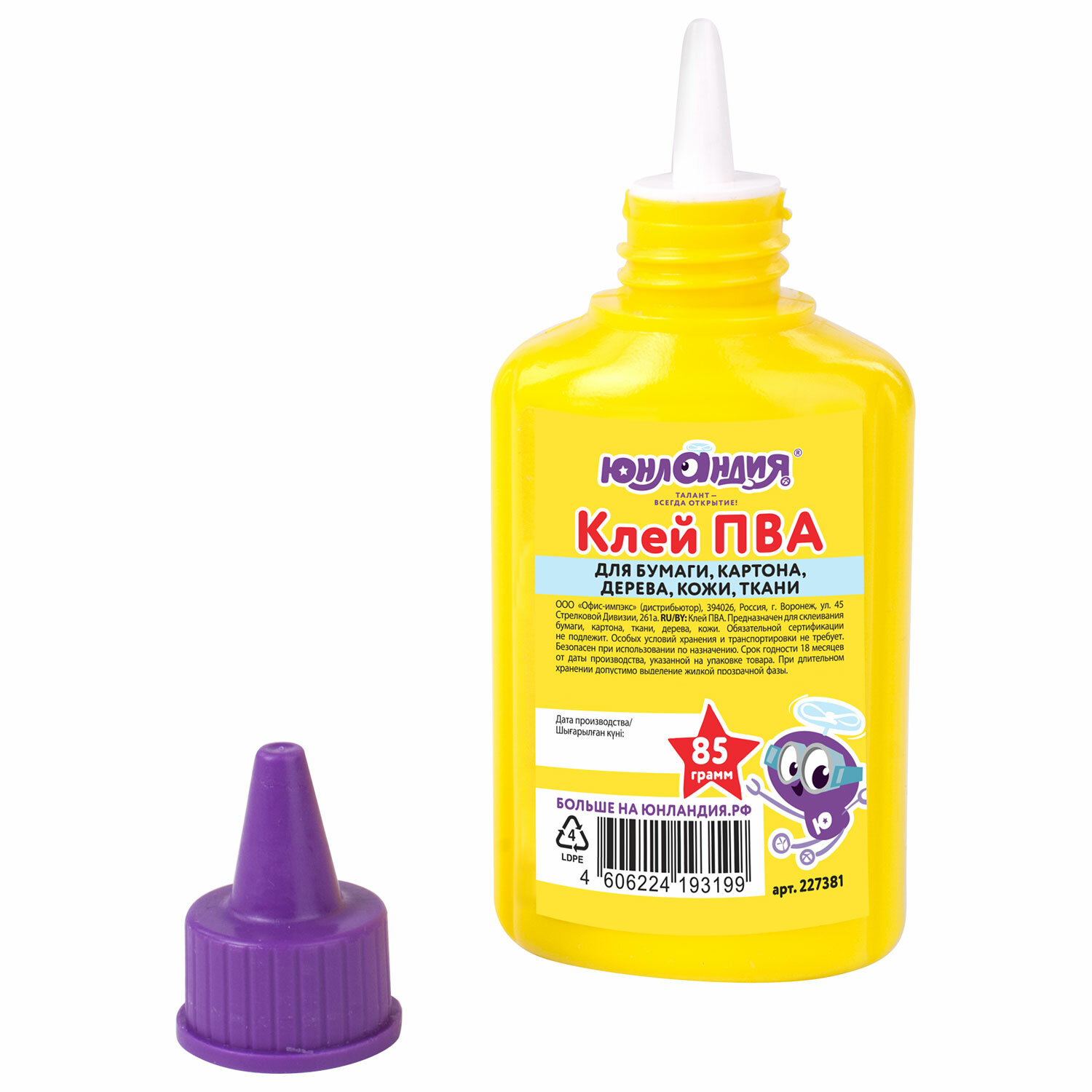 Клей ПВА ЮНЛАНДИЯ (бумага, картон, дерево), 85 г, 227381