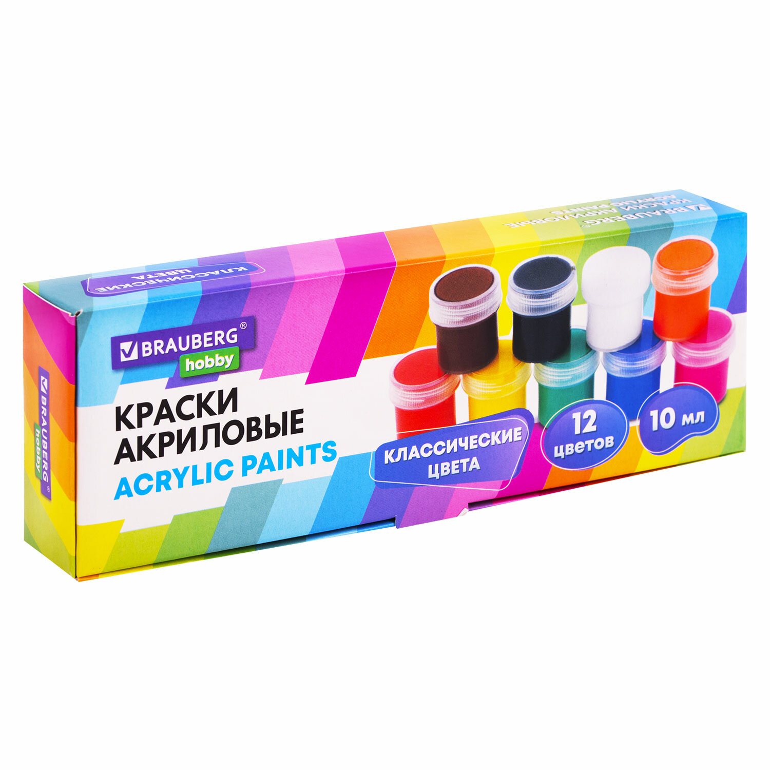 Краски акриловые для рисования и творчества 12 цветов по 10 мл, BRAUBERG HOBBY, 192433