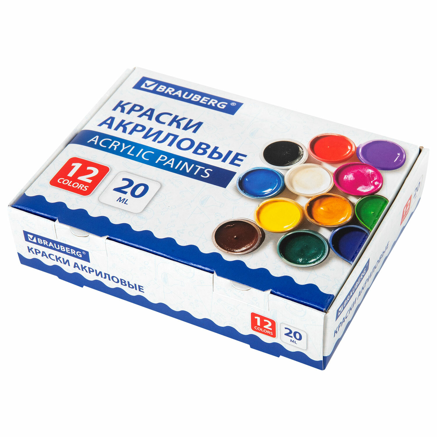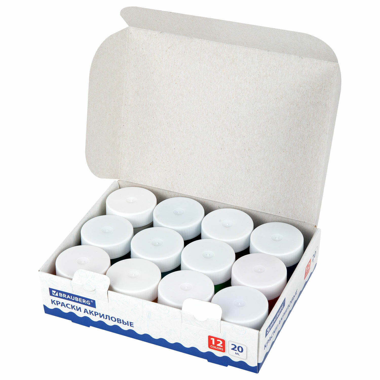 - Краски акриловые для рисования и творчества 12 цветов по 20 мл, BRAUBERG, 192564