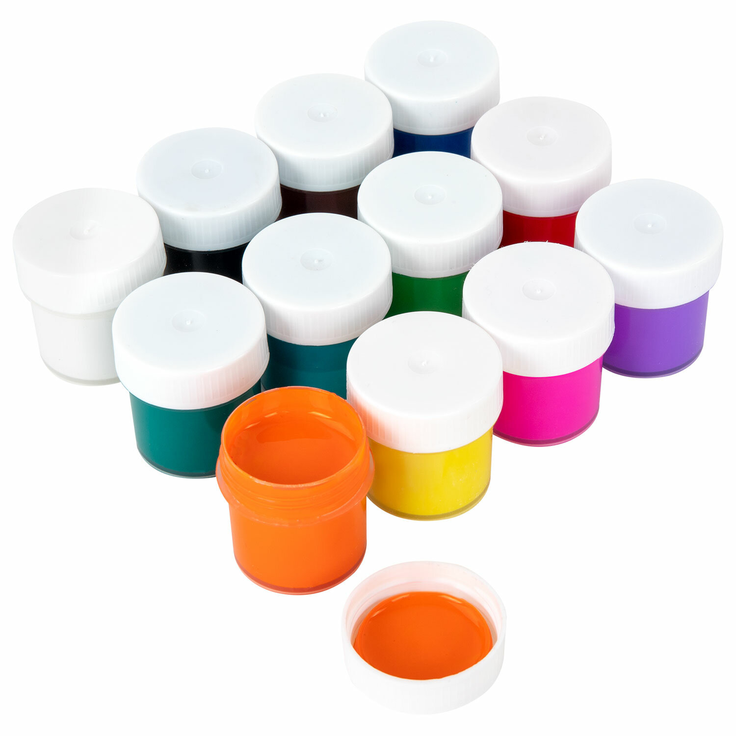 Краски отлично смешиваются, легко наносятся на большинство поверхностей, подходят для кастомизации, не тускнеют после высыхания и не выгорают при воздействии солнечных лучей. При высыхании образуют матовый финиш. Поставляются в баночках объемом 20 мл с закручивающейся крышкой в картонной коробке. Краски акриловые для рисования и творчества 12 цветов по 20 мл, BRAUBERG, 192564