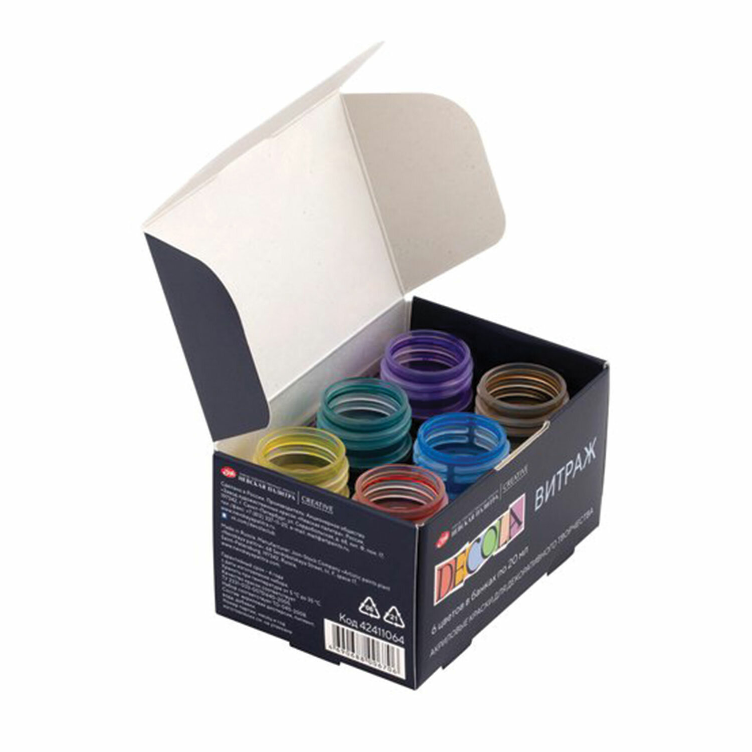 - Краски акриловые для витража "Декола", 6 цветов по 20 мл, в банках, Невская Палитра, 42411064