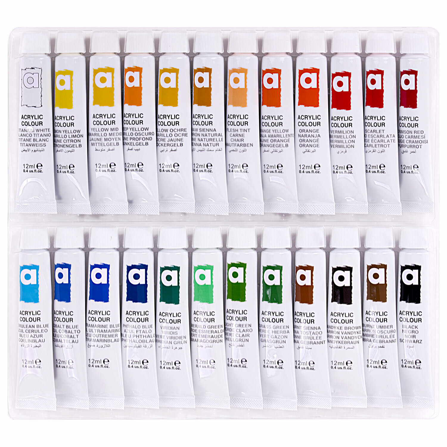 В набор входят 24 ярких акриловых цвета: