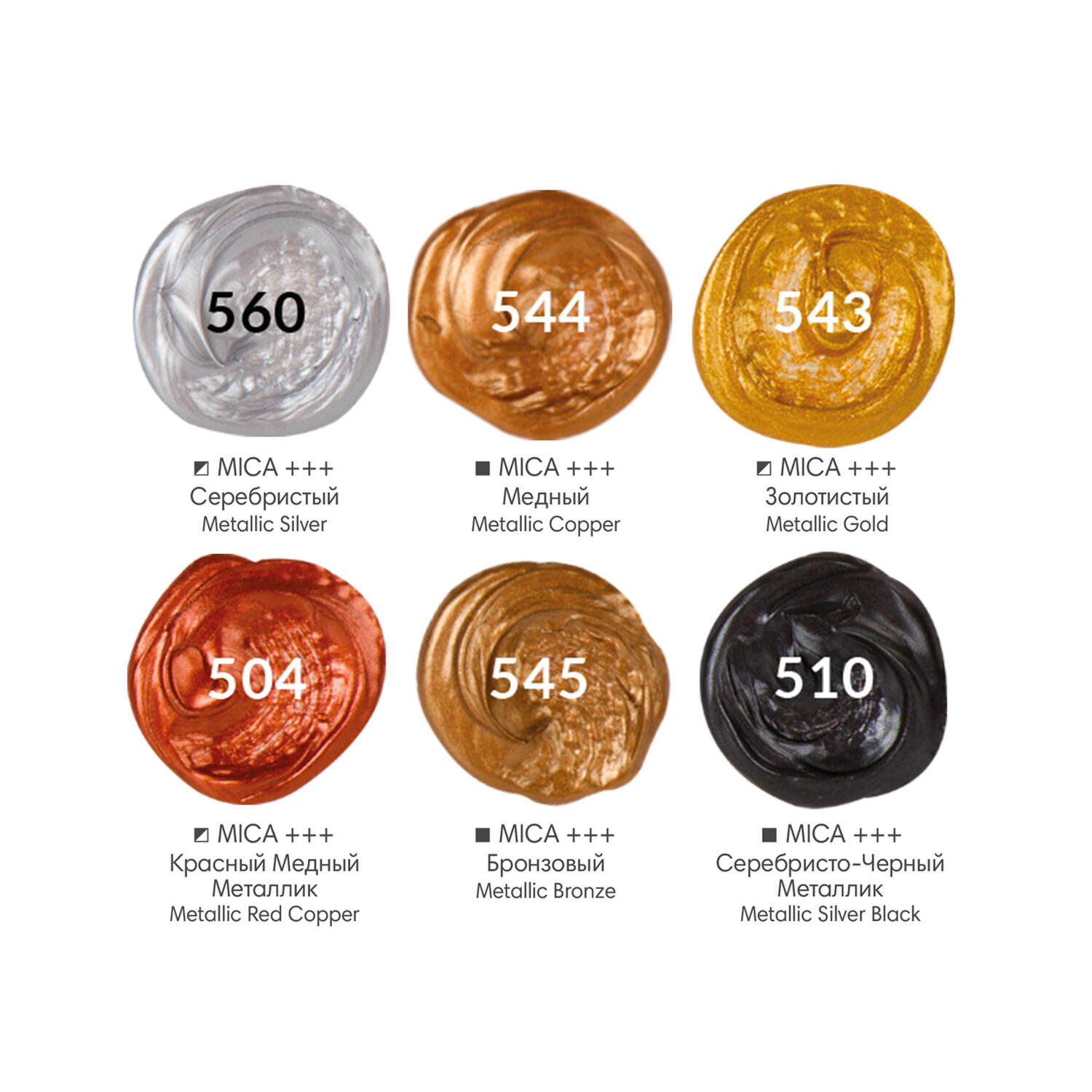 Краски с эффектом t;металликt;. Легко наносятся практически на любую поверхность. Быстрое высыхание без изменения цвета. Отличная укрывистость и светостойкость. Разбавляются водой. Не токсичны и не имеют неприятного резкого запаха. Краски поставляются в банках объемом 22 мл в картонной коробке.