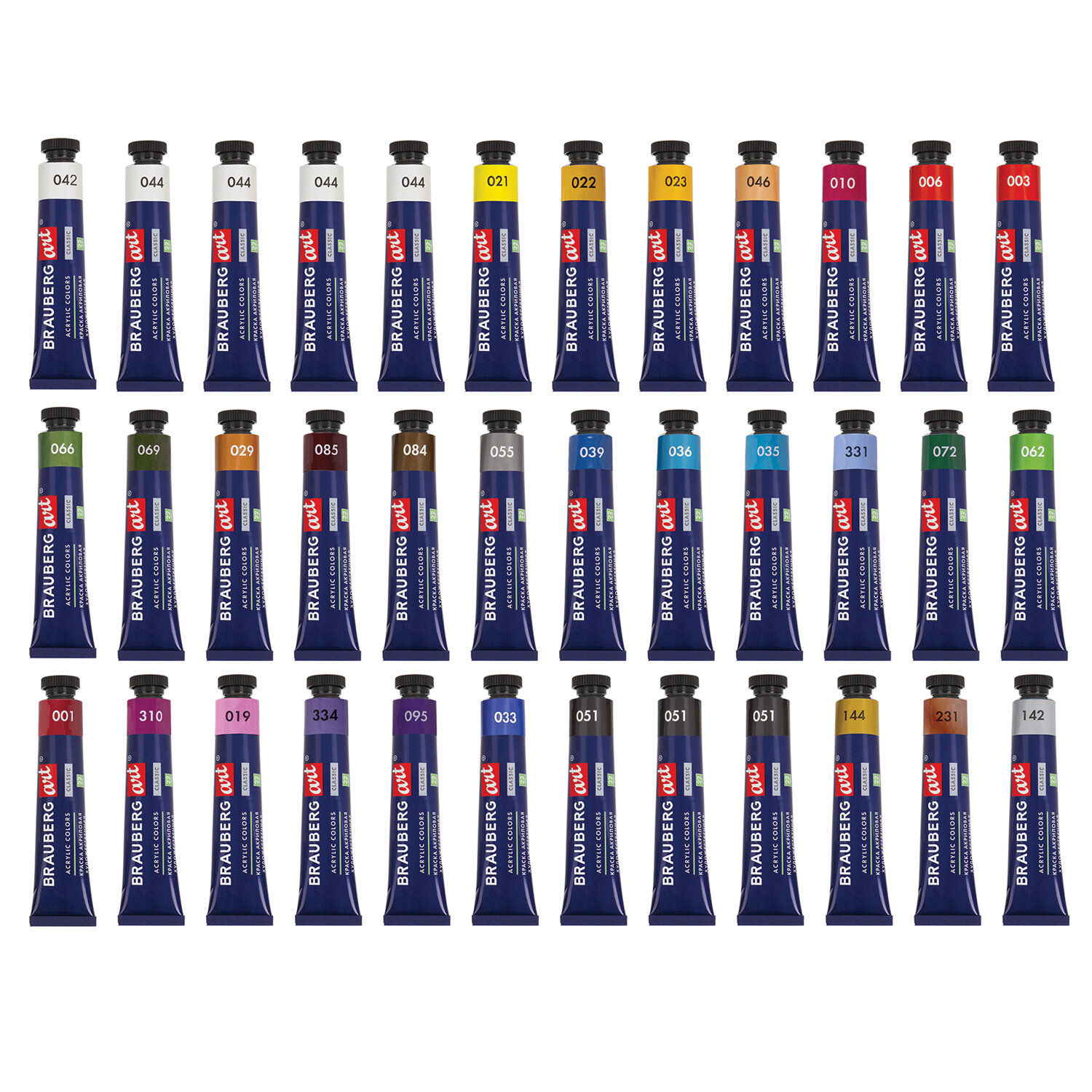 - Краски акриловые художественные, НАБОР 36 штук, 31 цвет, в тубах по 22 мл, BRAUBERG ART CLASSIC, 192245