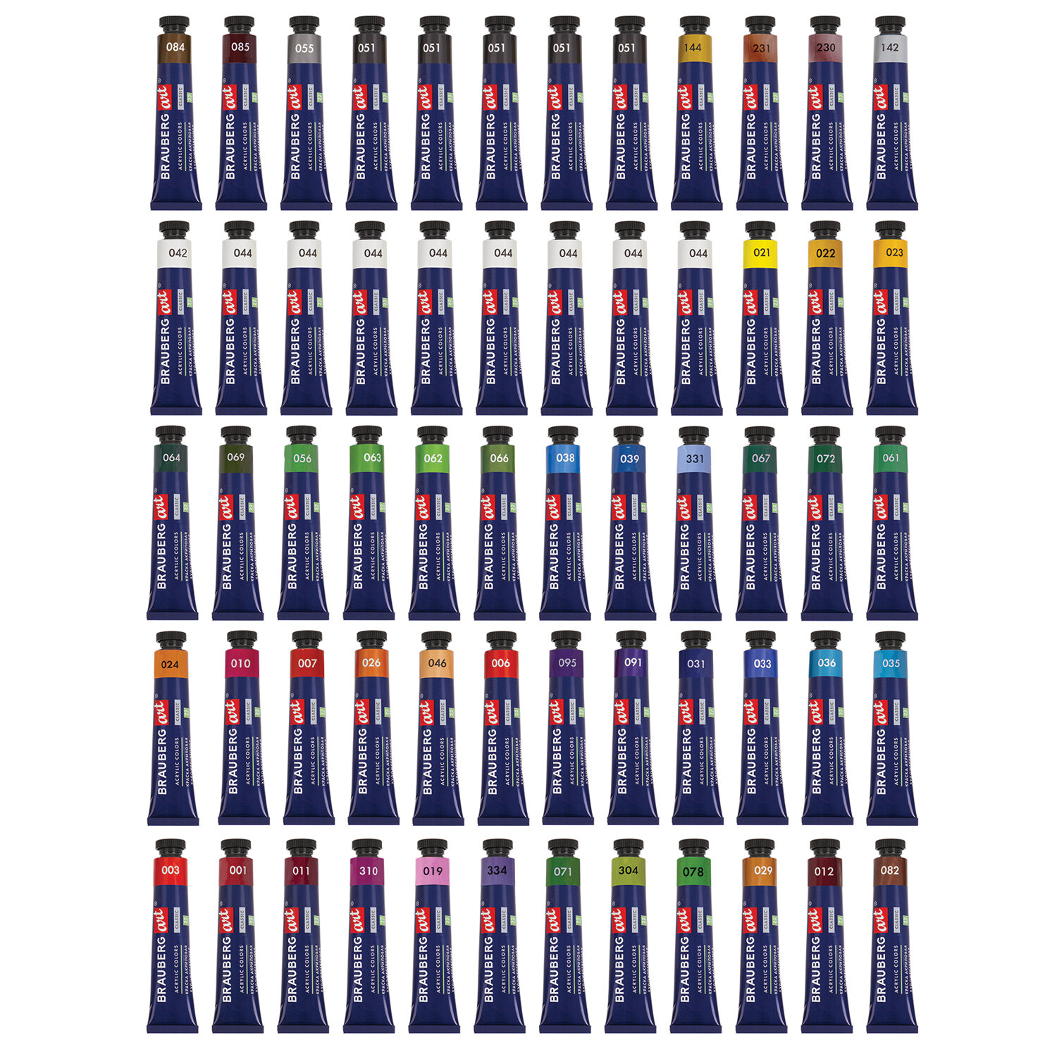 - Краски акриловые художественные, НАБОР 60 штук, 49 цветов, в тубах по 22 мл, BRAUBERG ART CLASSIC, 192246
