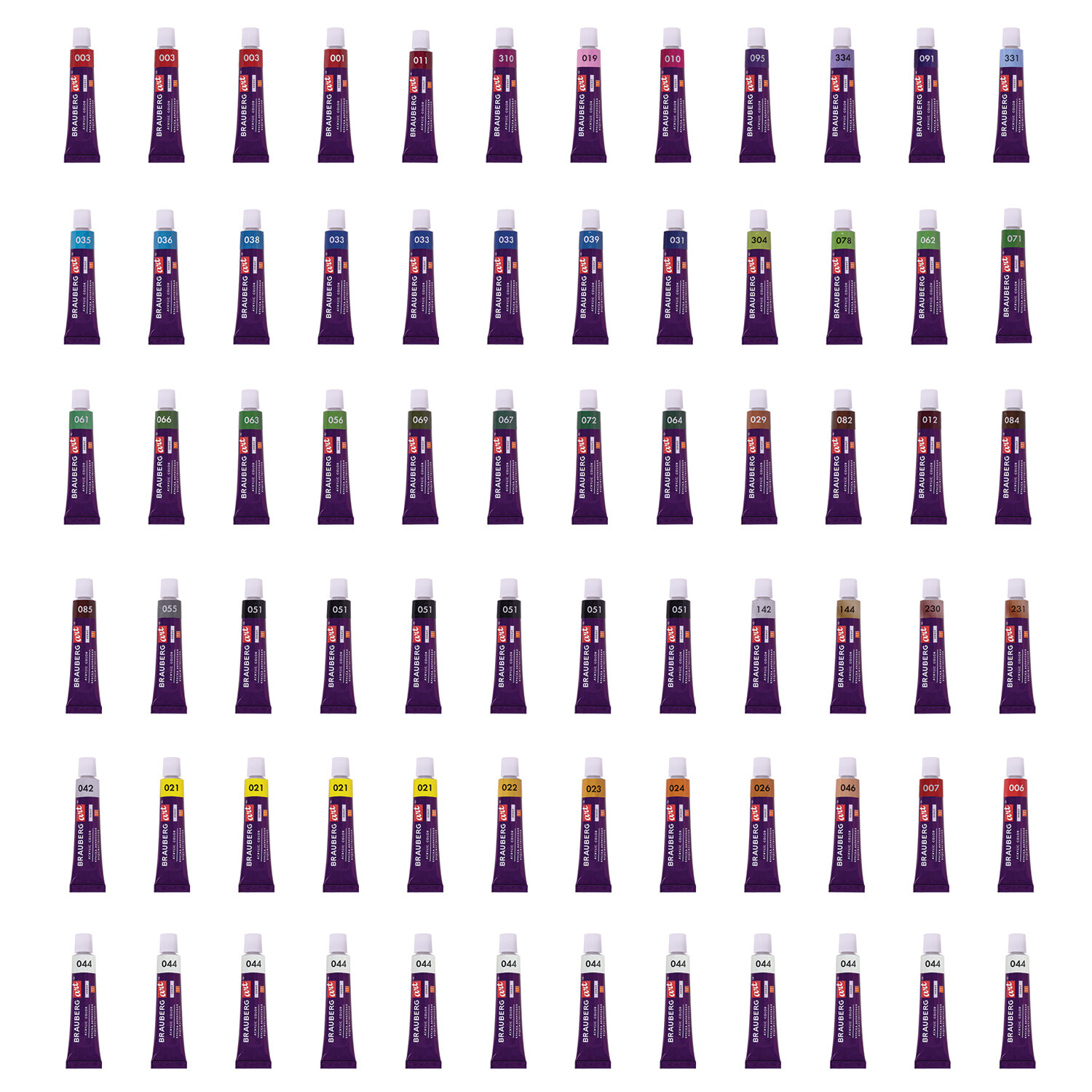 - Краски акриловые художественные, НАБОР 72 штуки, 49 цветов по 12 мл в тубах, BRAUBERG ART DEBUT, 192296