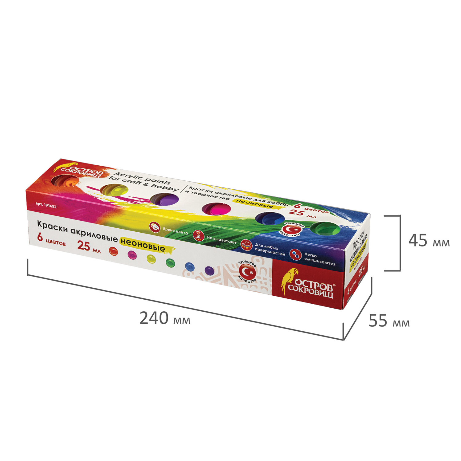 - Краски акриловые НЕОН для рисования и хобби ОСТРОВ СОКРОВИЩ 6 цветов по 25 мл, 191692