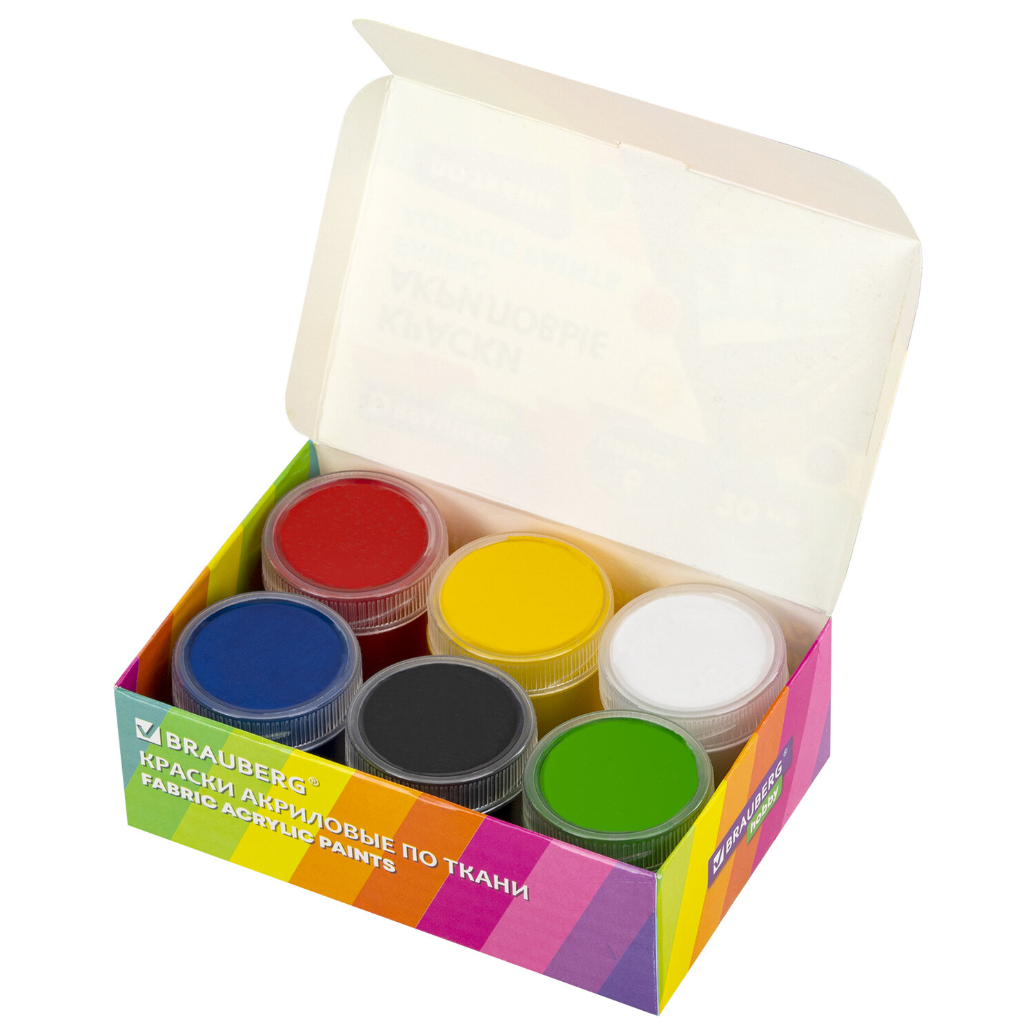 - гладить щадяще и с изнаночной стороны. Краски акриловые по ткани 6 цветов по 20 мл, BRAUBERG HOBBY, 192441