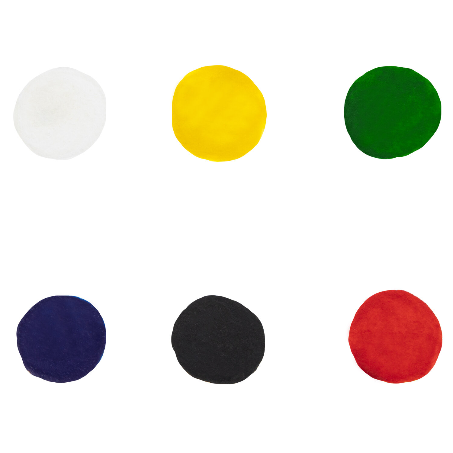 В набор входят 6 ярких классических цветов: белый, черный, желтый, красный, синий, зеленый.