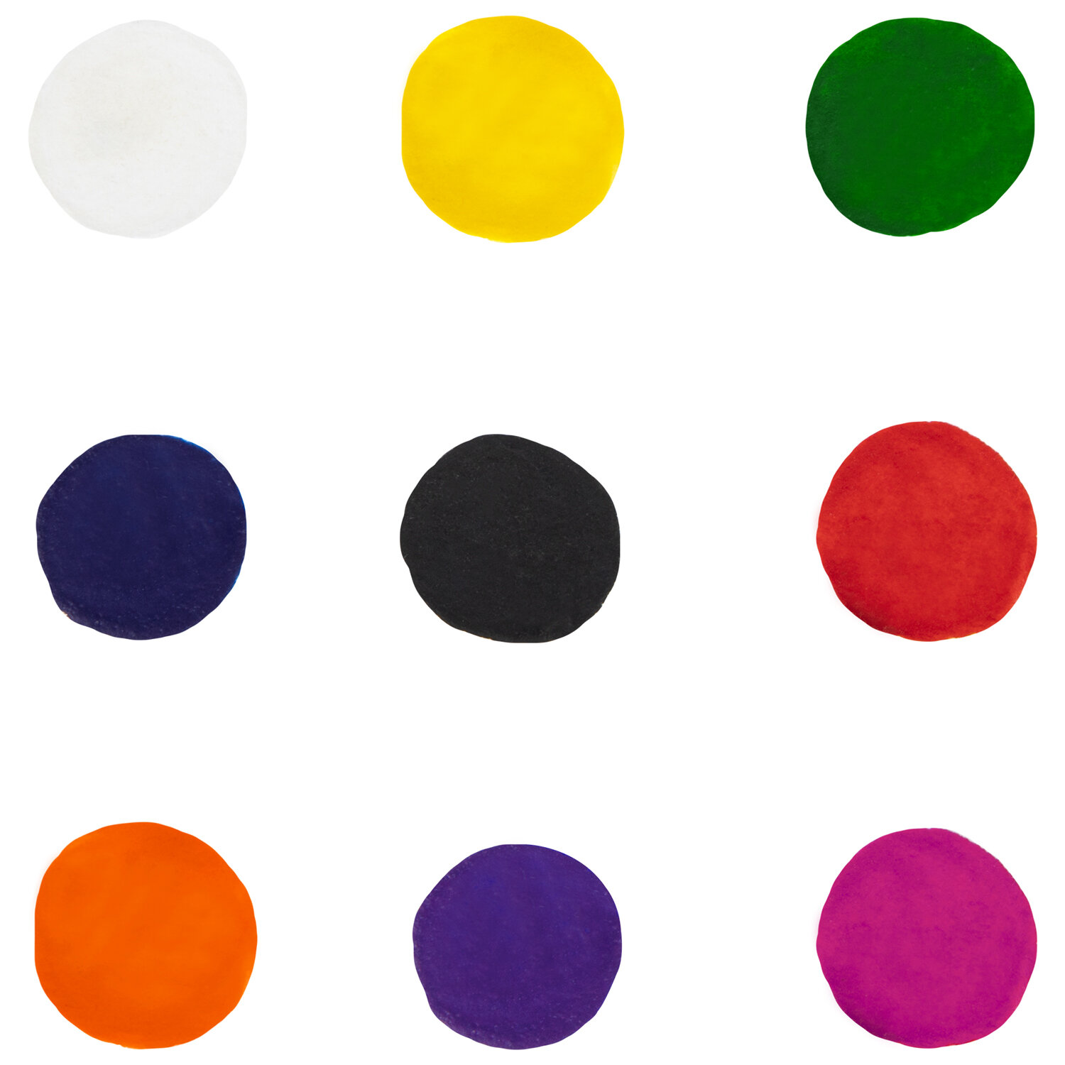 В набор входят 9 ярких классических цветов: белый, черный, желтый, красный, синий, зеленый, фиолетовый, розовый, оранжевый.