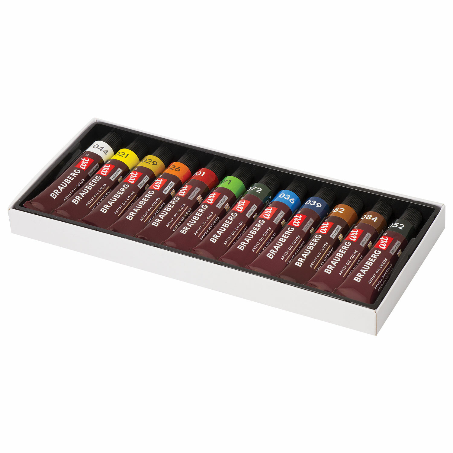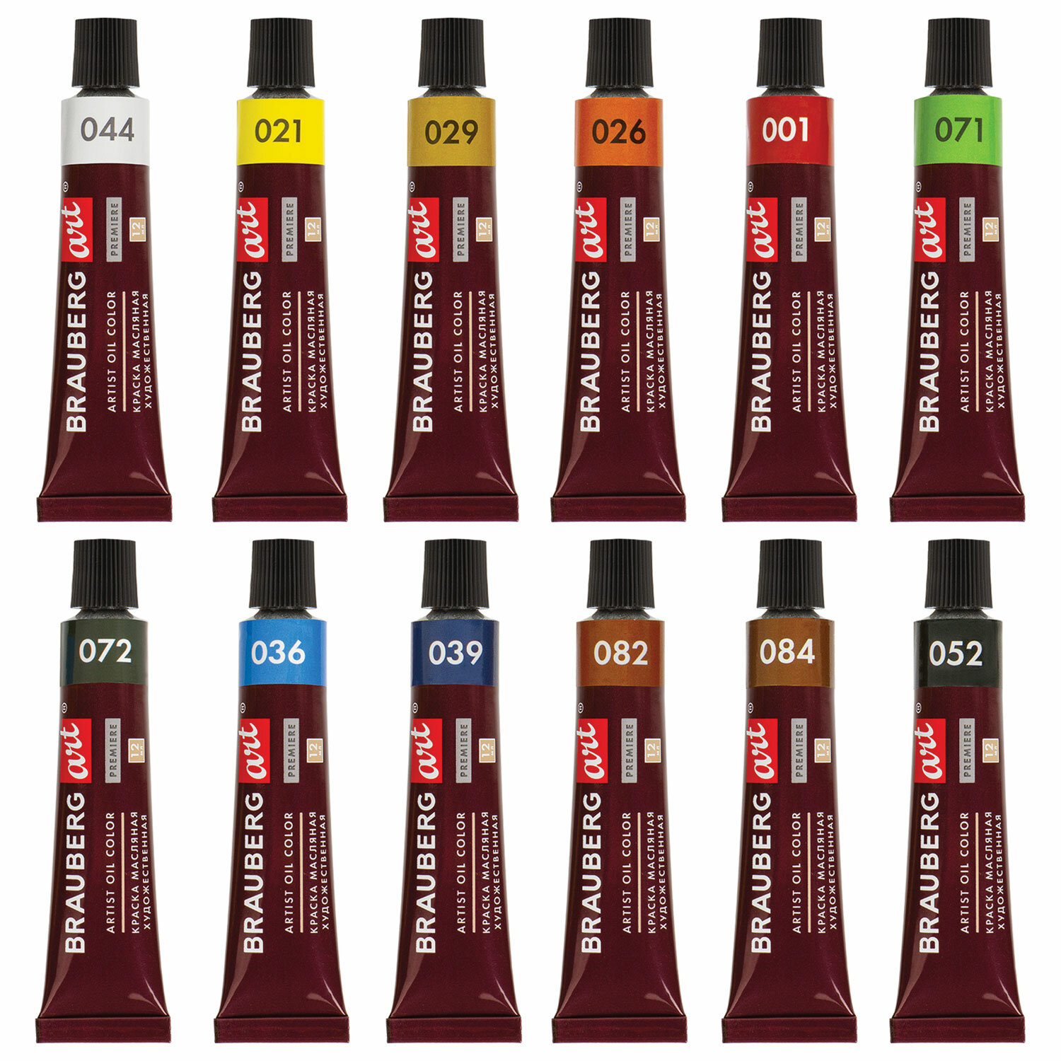 - Краски масляные художественные BRAUBERG ART PREMIERE, 12 цв. по 12 мл, в тубах, 191455