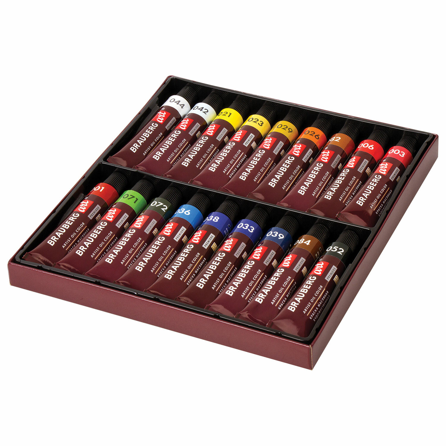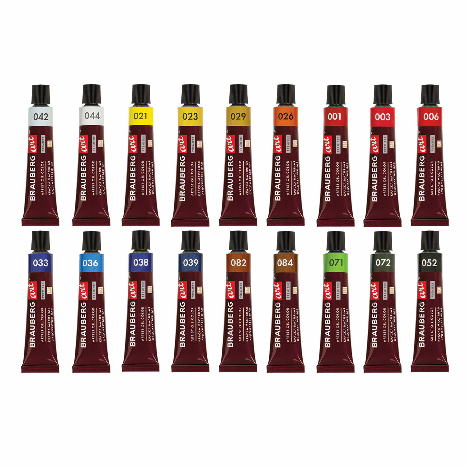 - Краски масляные художественные BRAUBERG ART PREMIERE, 18 цв. по 12 мл, в тубах, 191456