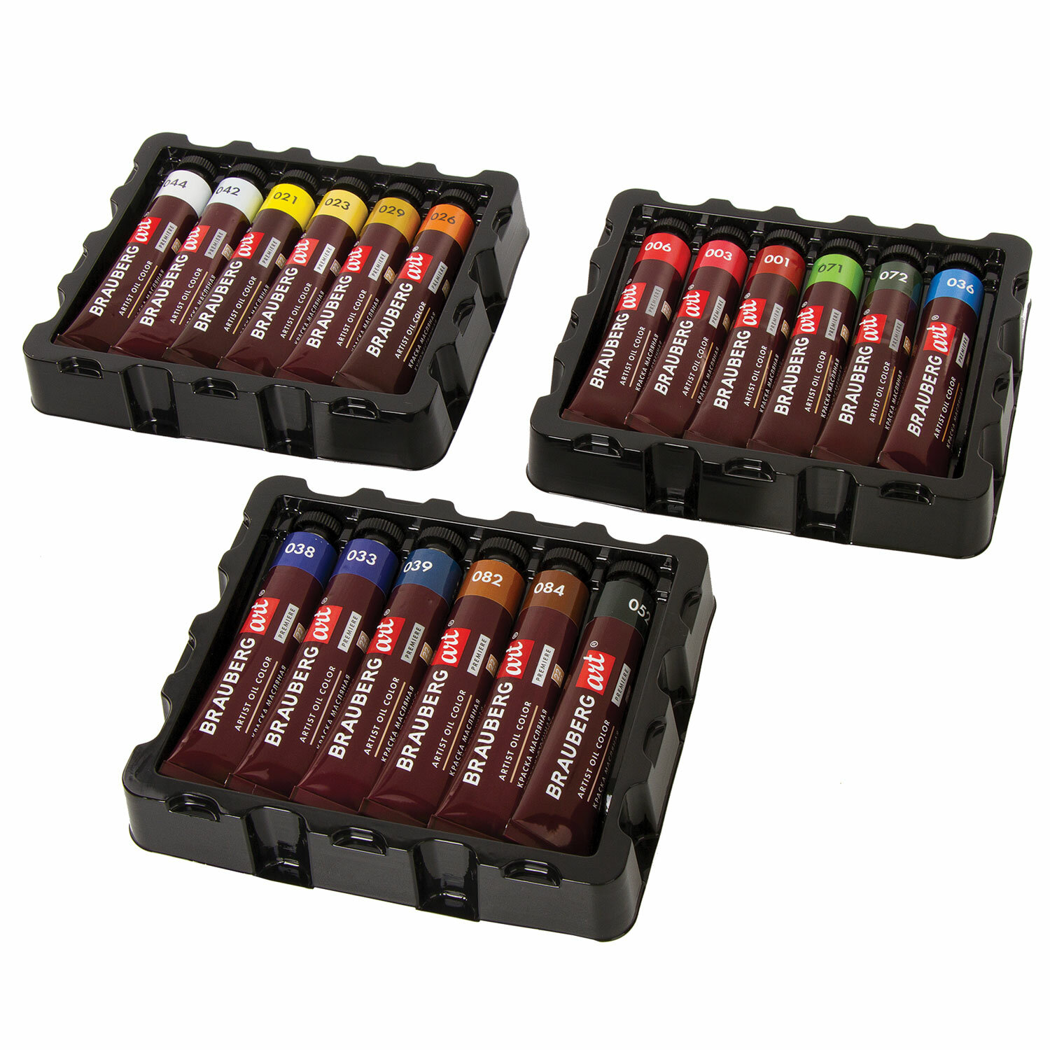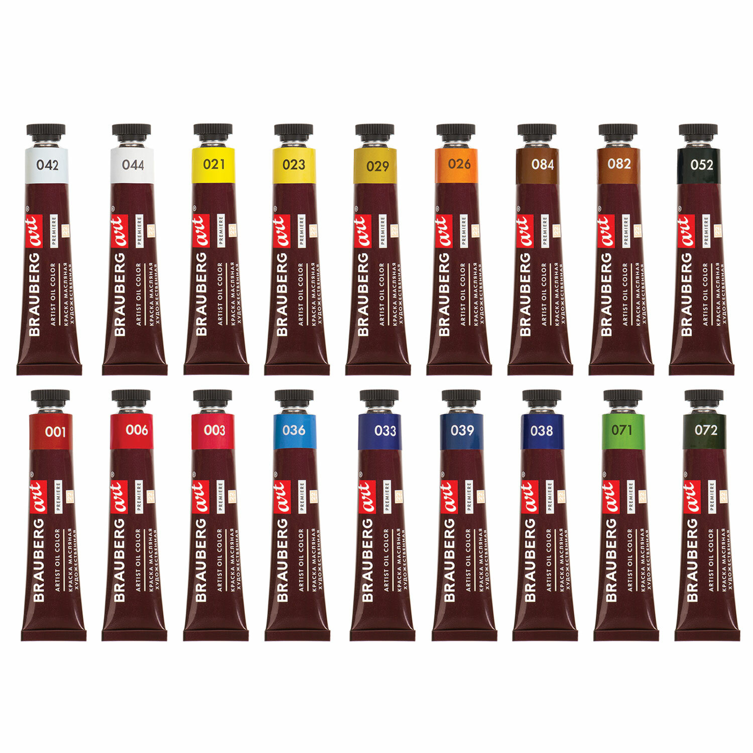 Краски масляные художественные BRAUBERG ART PREMIERE, 18 цв. по 22 мл, в тубах, 191459