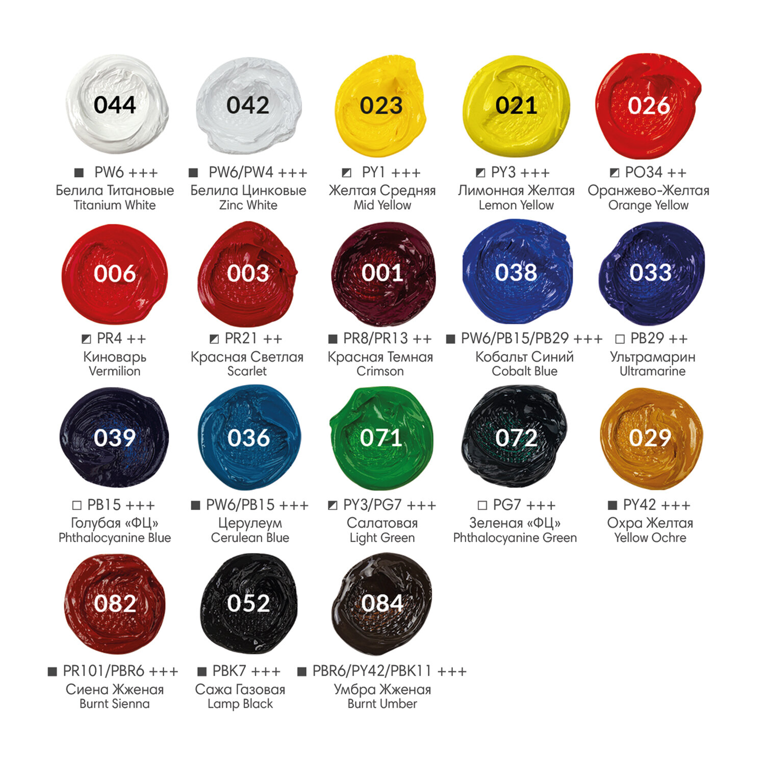 - сажа газовая (052). Краски масляные художественные BRAUBERG ART PREMIERE, 18 цв. по 22 мл, в тубах, 191459