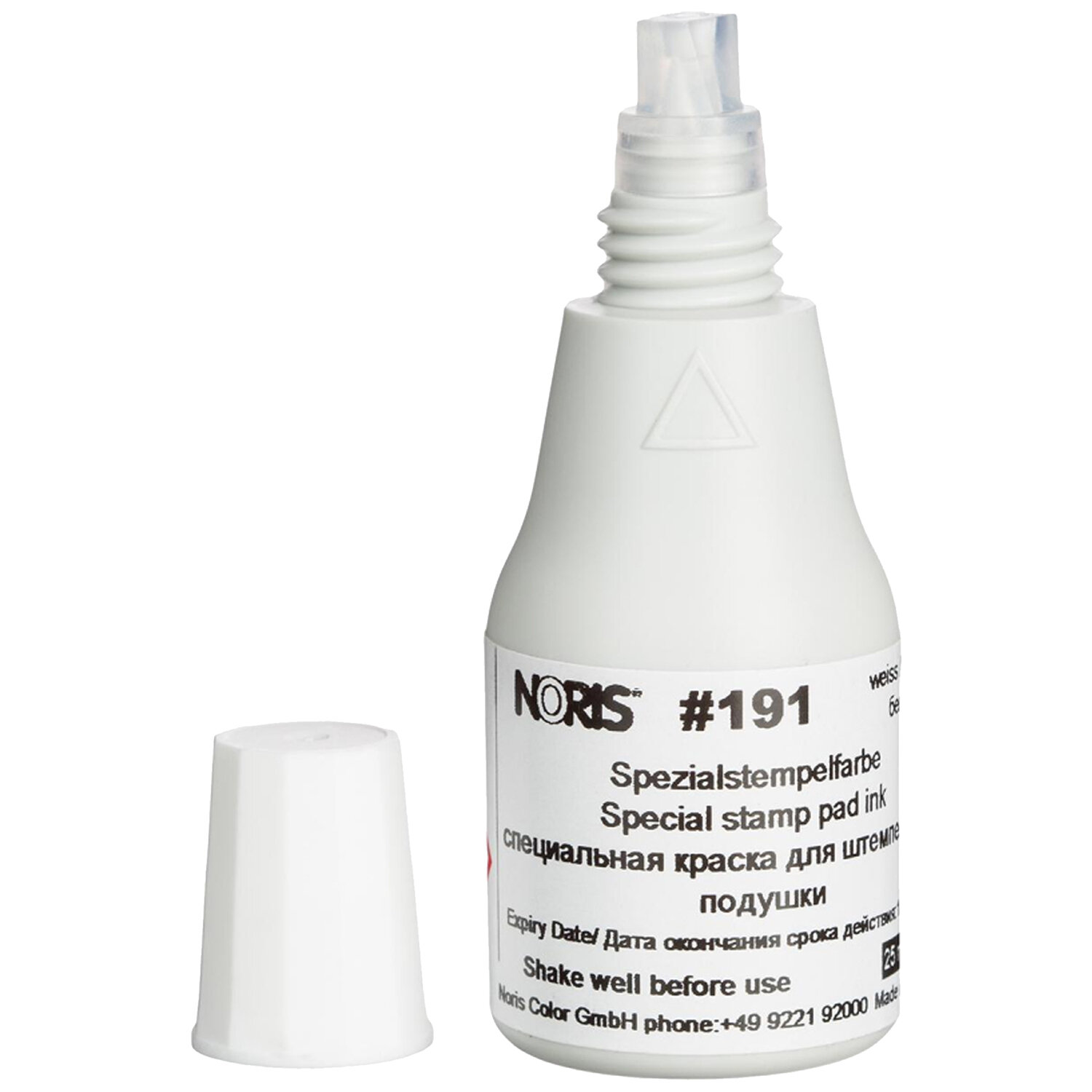 - Краска штемпельная NORIS БЕЛАЯ 25 мл (универсальная, для глянцевой бумаги, металла, пластмасс и т.д.), 191Аб