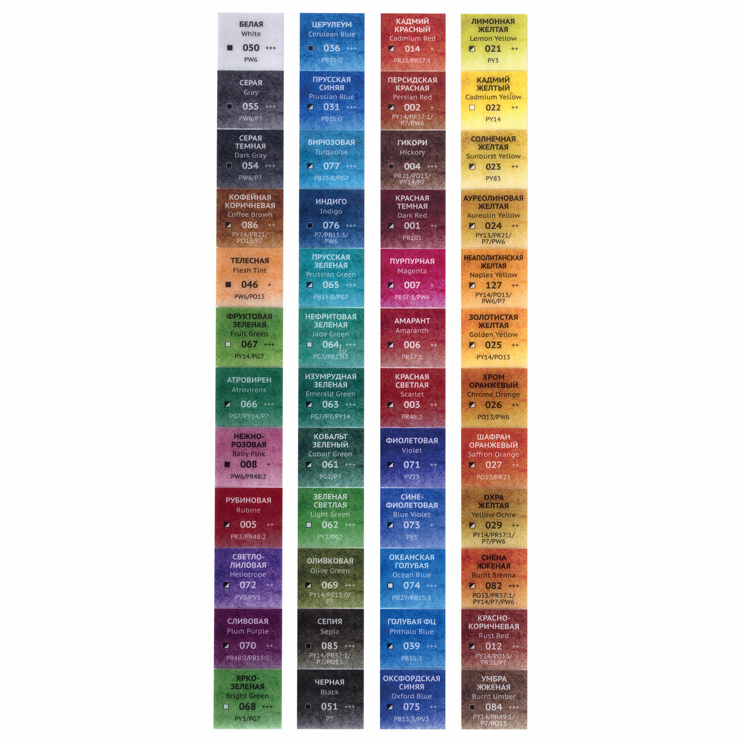 Акварельные краски созданы из высококачественных пигментов и гуммиарабика, без добавления примесей, что обеспечивает чистоту и насыщенность каждого цвета, а также получаемых при смешивании оттенков. Краски обладают отличной размываемостью и разносимостью, сохраняют оттенки после высыхания, высокоустойчивы к воздействию солнечного света.