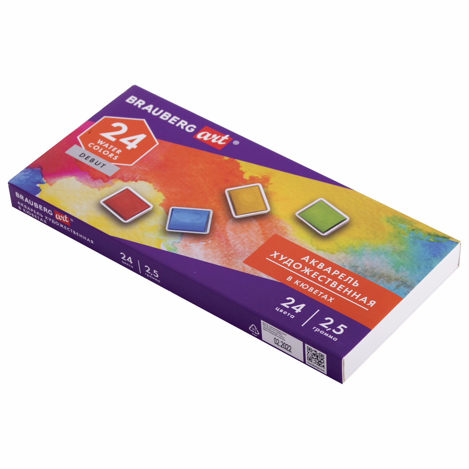 - Акварель художественная в кюветах НАБОР 24 цвета по 2,5 г, BRAUBERG ART DEBUT, 191778