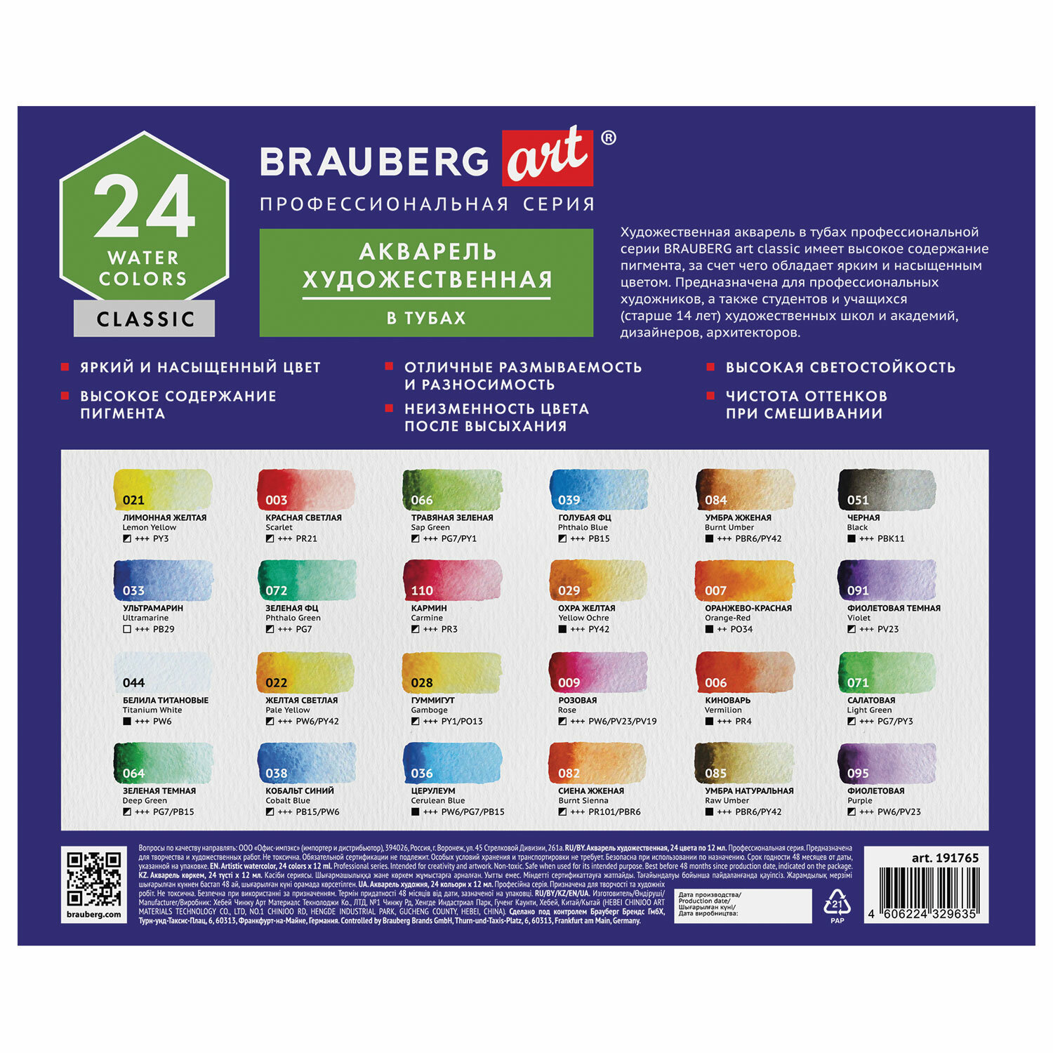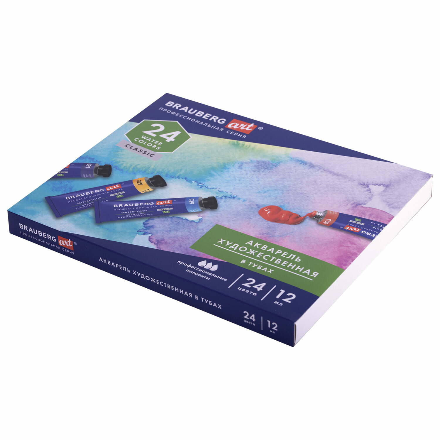 - Акварель художественная в тубах НАБОР 24 цвета по 12 мл, BRAUBERG ART CLASSIC, 191765