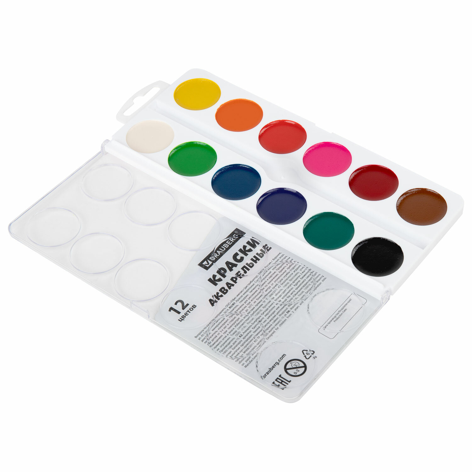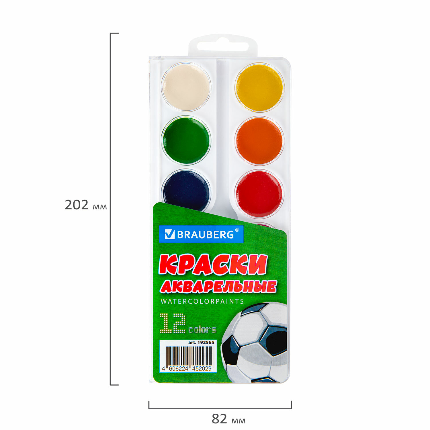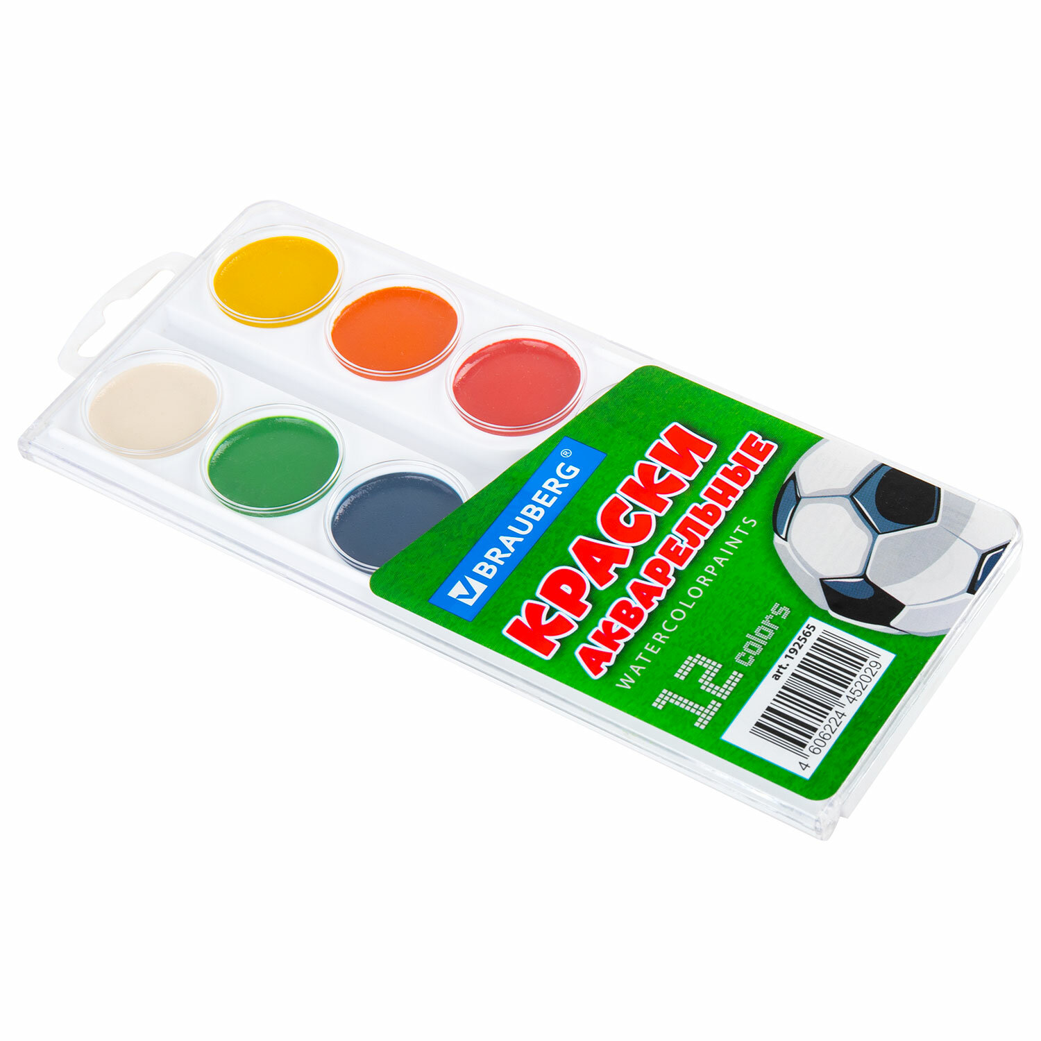 - Краски акварельные BRAUBERG 12 цветов "Футбол", медовые, круглые кюветы, 192565