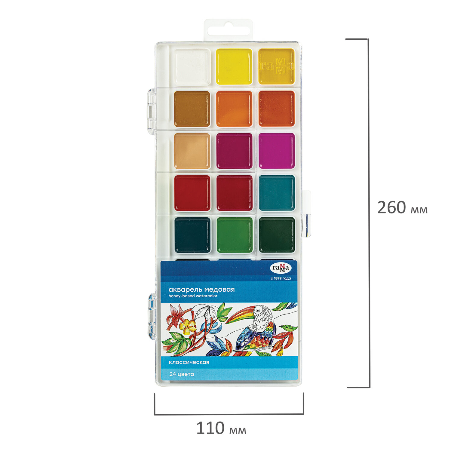 Краски акварельные ГАММА "Классическая", 24 цвета, медовые, пластиковый корпус, европодвес, 1009198