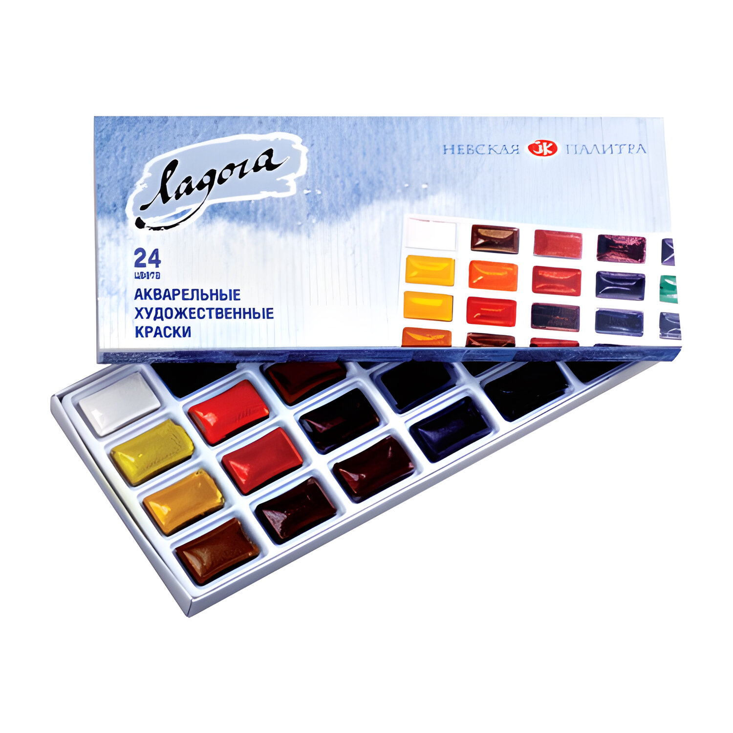 - Краски акварельные художественные "Ладога", 24 цвета, кювета 2,5 мл, картонная коробка, Невская Палитра, 20411912