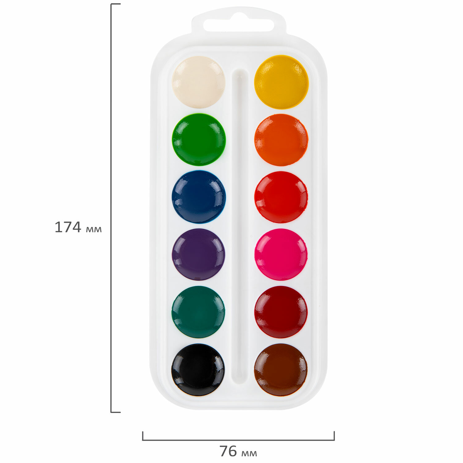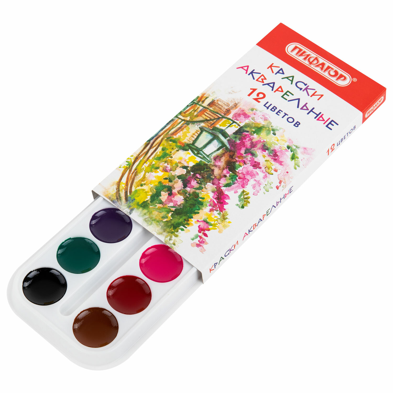 - Краски акварельные ПИФАГОР 12 цветов, медовые, круглые кюветы, 192549