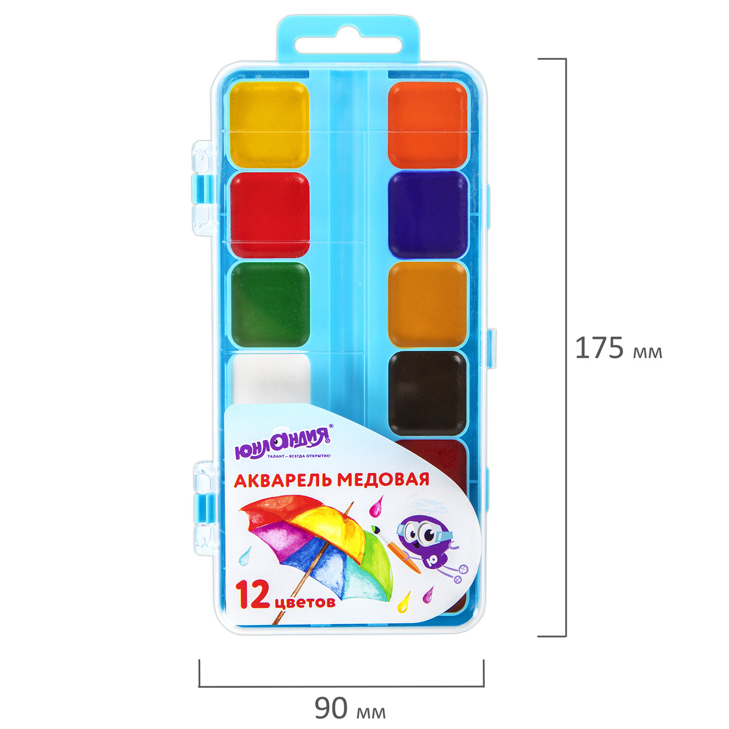 12 ярких насыщенных цветов отлично смешиваются между собой и позволяют создать множество оттенков, обеспечивают однородное окрашивание. Краски быстро высыхают и не портятся со временем. Безопасны для детей, нетоксичны. Выпускаются в пластиковом пенале с прозрачной крышкой, квадратной формой кювет и отделением для кисточки. Упаковка обладает компактными размерами и легким весом. Краски акварельные ЮНЛАНДИЯ "ЮНЛАНДИК-ХУДОЖНИК", медовые, 12 цветов, КЛАССИЧЕСКИЕ, пластик, 192287