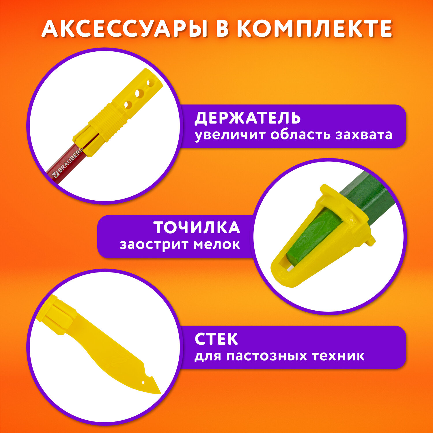 - Пастель масляная восковые мелки утолщенные 48 цвета с точилкой, держателем и стеком, BRAUBERG PREMIUM, 272714