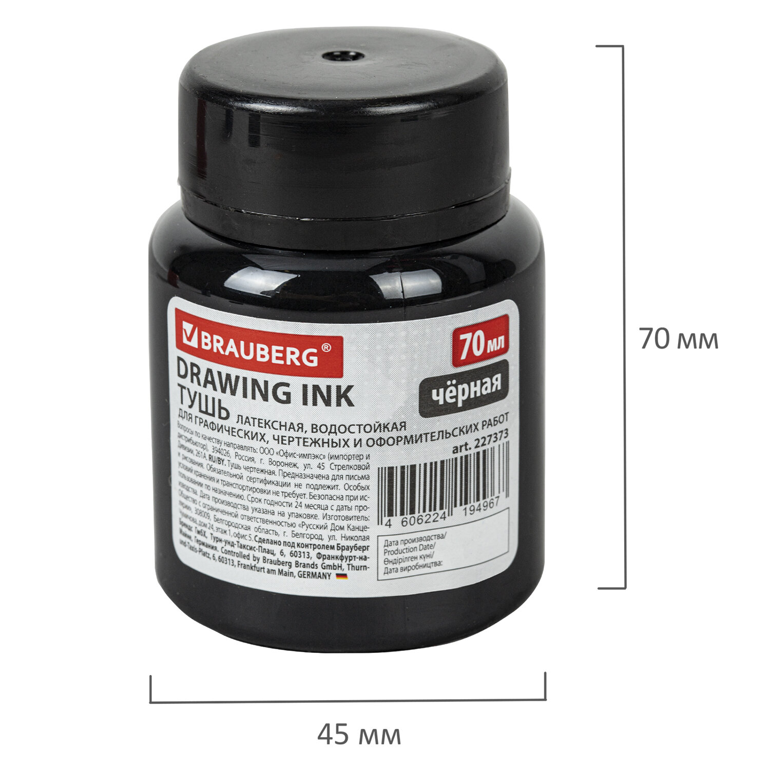 - Тушь чертежная BRAUBERG, 70 мл, черная, водостойкая, латексная (черчение, графика, оформление), 227373