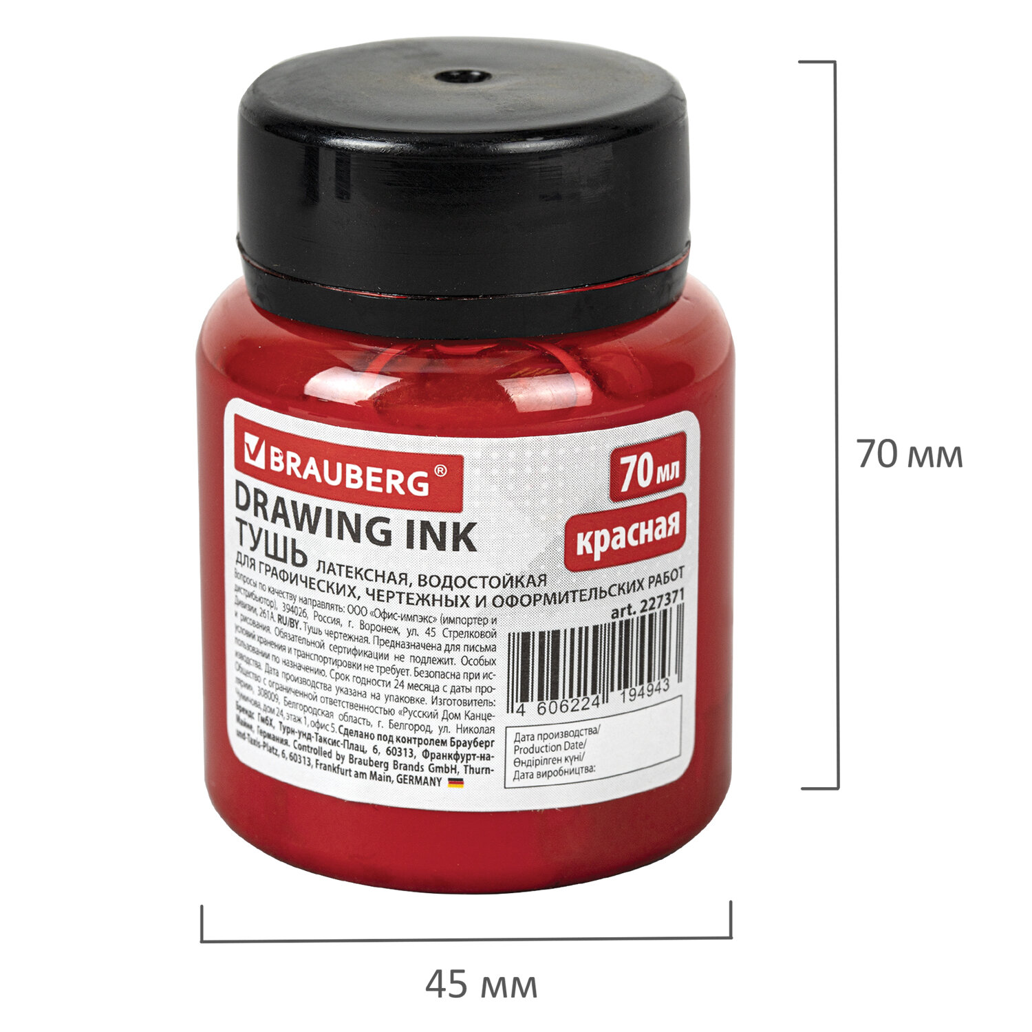 - Тушь чертежная BRAUBERG, 70 мл, красная, водостойкая, латексная (черчение, графика, оформление), 227371