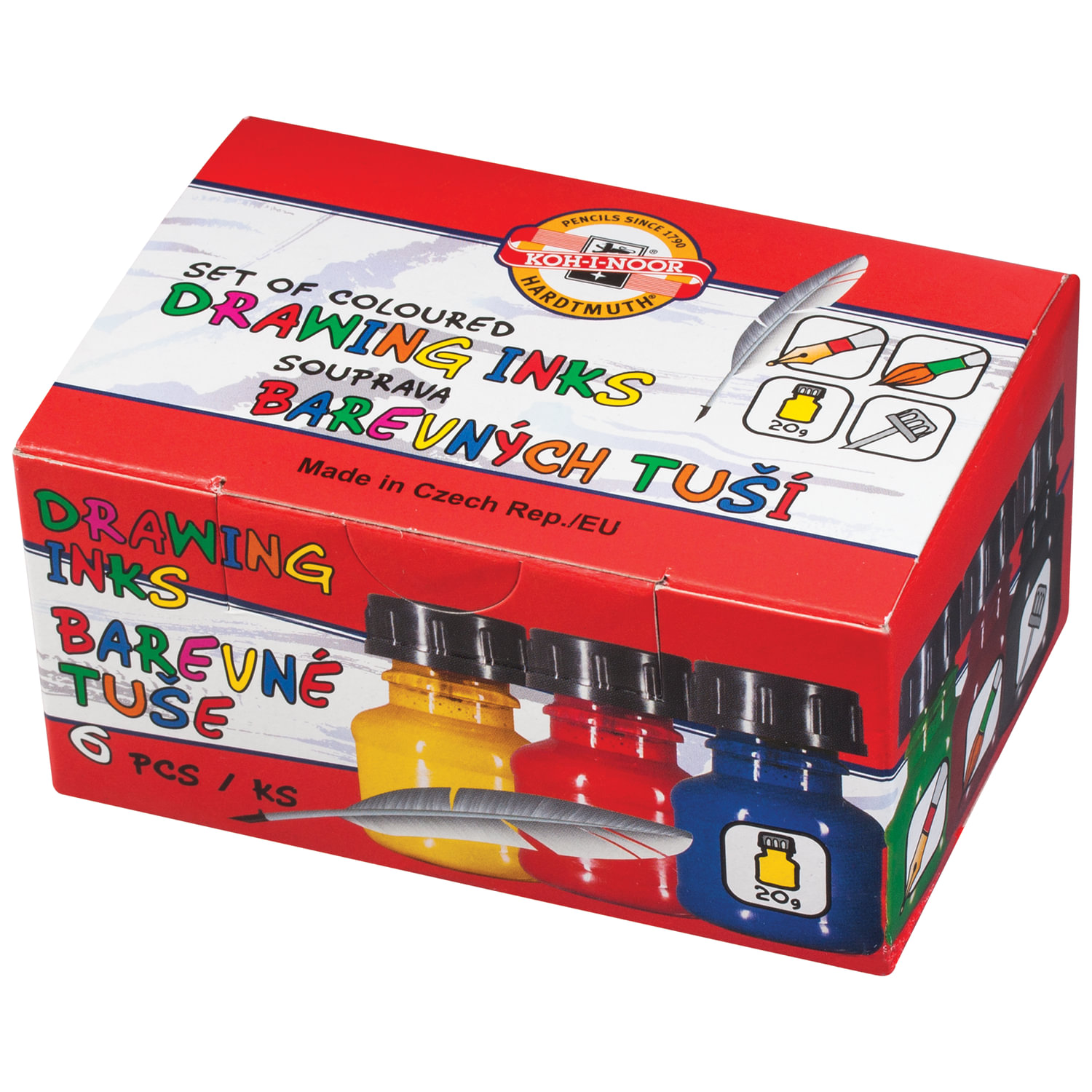 Тушь KOH-I-NOOR, набор 6 шт. х 20 мл, ассорти, картонная коробка, 01417S0601KK