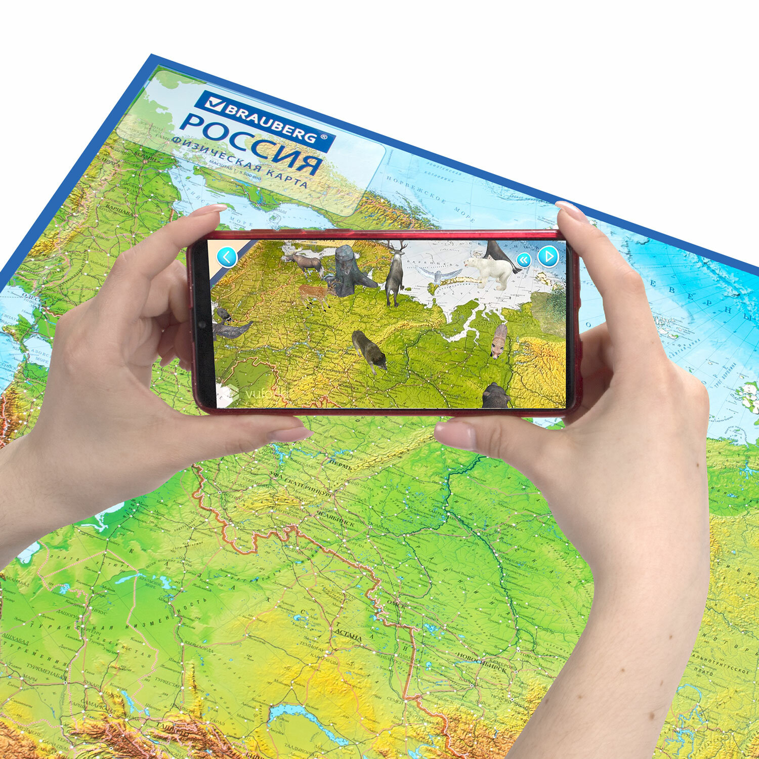 Скачайте приложение IQ Globen на IOS или Android, в главном меню выберите t;Картыt;, откройте карту России и наведите камеру. Эффект дополненной реальности не заставит себя ждать. Герои приложения помогут вам в изучении России.